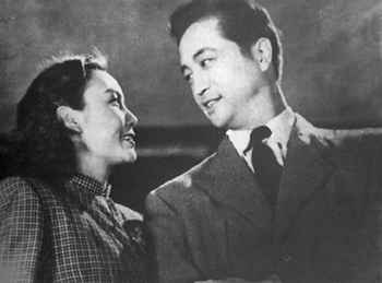 1947年2月,由史东山编导, 韩仲良摄影的影片《八千里路云和月》上映后轰动了全国和海外,受到了进步舆论的一致推崇和广大观众的热烈欢迎。 《八千里路云和月》以抗敌演剧队在抗战期间和胜利后的生活为依据,通过江玲玉、高礼彬这两个爱国青年历尽艰苦,服务抗战和周家荣利用抗战发财的鲜明对比,从一个侧面概括了战时和战后国民党统治区社会生活的真实。 图片说明:两位主角的扮演者白杨与陶金