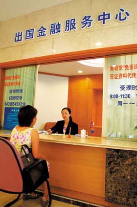 有人出去,有人回来,“出国”永远是这一季的热门话题。提起出国,许多人第一个念头就是找留学中介公司。其实,对适应人群来说,在银行办理出国留学业务,会更加省时省力。 记得好几年前,记者的一位亲戚到美国探亲,为了与签证官面谈,全家出动到乌鲁木齐路排队,那时侯还没有经济能力请民工代劳,家人轮番上阵总算在排了两天一夜后坐在签证官的面前,这位亲戚终于如愿赴美,而留在笔者脑海里的就是出国之前的那段“炼狱”般的日子。 虽然条件很苛刻,但现在一部分自身条件符合要求的出国人员,已经可以摆脱这样的出国遭遇。在中信实业银行的出国金融服务中心,记者感受到一种截然不同的出国体验。