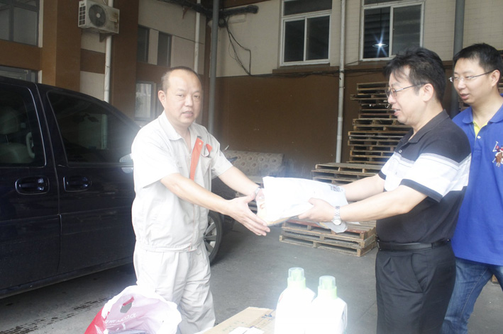 7月14日一早,徐书记带队来到公司下属天明货运公司,向工作在仓库第一线的每一位职工送上清凉用品和清凉饮用水。现在天明仓库上海书展和学校教材进货同时进行,人手紧,任务重,高温天仓库非常闷热,为完成好各项工作任务,大家汗流浃背的在仓库内忙得一刻不停。徐书记向天明公司总经理金民同志详细了解了工作情况,希望天明公司合理安排好工作时间和进度,安排好职工休息时间,保证广大职工的身体健康。