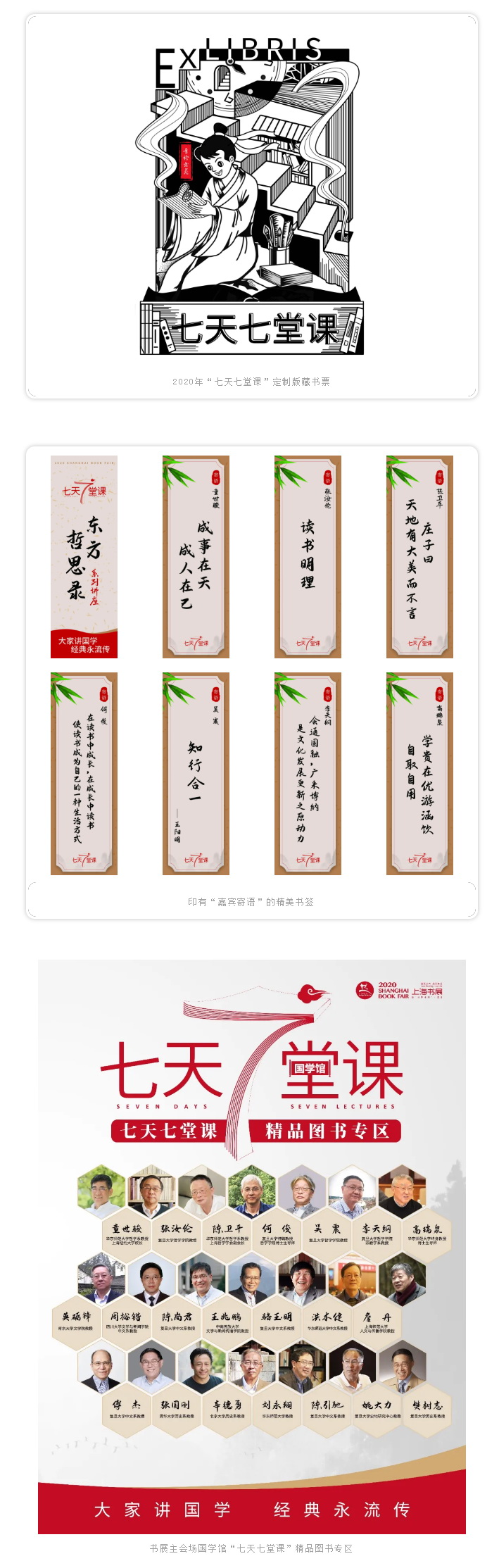 “七天七堂课”系列国学讲座是上海学生阅读联盟通过上海图书有限公司,在上海书展中连续三年聚力打造的特色品牌活动。该活动旨在通过一系列高品质讲座,弘扬中华优秀传统文化,推动全民阅读,助力“书香校园”的建设。 8月12日至18日,2020年上海书展即将拉开帷幕。这一次,我们将围绕“哲学”主题,邀请华东师范大学哲学系教授、上海纽约大学校长童世骏,复旦大学哲学学院教授张汝伦,华东师范大学哲学系教授、上海哲学学会副会长陈卫平,复旦大学特聘教授、哲学学院博士生导师何俊,复旦大学哲学学院教授吴震,复旦大学哲学学院宗教学系教授李天纲,华东师范大学终身教授、博士生导师高瑞泉等七位哲学领域顶尖学者,为读者奉上七场精彩讲座。【七天七堂课——东方哲思录系列讲座】— 主办单位 —上海学生阅读联盟上海世纪出版(集团)有限公司— 承办单位 —上海市科技艺术教育中心上海图书有限公司— 活动地点 —上海展览中心友谊会堂一楼(南京西路1333号8号门)— 特邀主持 —骆新长按下方二维码即可报名参加!惊喜小贴士 为了让听障读者也能近距离接触博大精深的哲学文化,我们特别邀请了上海大学中国手语及聋人研究中心的手语老师,进行即时手语翻译。 活动现场,购书读者和提问读者还可获赠2020年“七天七堂课”定制版藏书票和印有“嘉宾寄语”的精美书签哦。 此外,在书展主会场国学馆中,我们还特设有“七天七堂课精品图书专区”,展出2018年至2020年“七天七堂课”系列国学讲座三期主讲嘉宾、总计二十一位顶尖学者的精品图书。8月12日至8月18日,我们不见不散! 温馨提示 1.因本届上海书展所有票证采取实名预约制,请报名读者提前预约购买上海书展当日门票,并随身携带身份证和绿色健康码,佩戴口罩,从南京西路1333号8号门进入上海展览中心。 2.活动当天,报名读者在友谊会堂一楼外扫码签到后,领取本场活动入场券方可入场。 3.更多精彩内容,请持续关注“上海图书有限公司”“海上博雅讲坛”微信公众号。