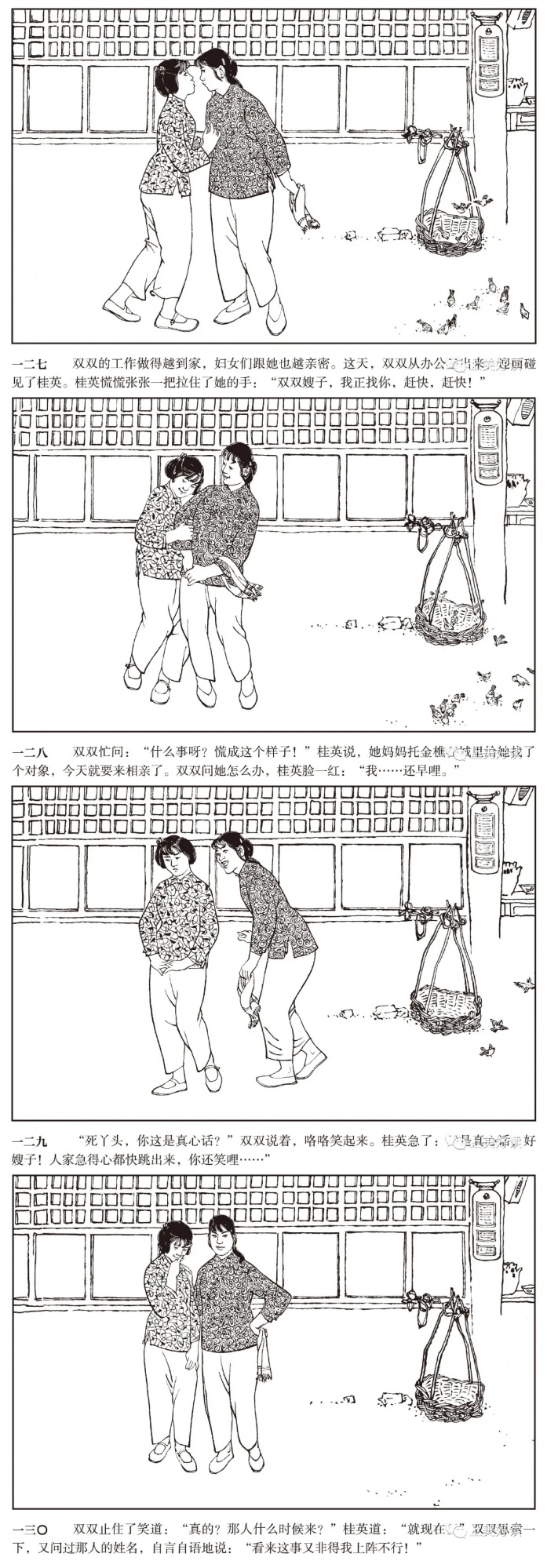 能够经受得住反复重版,或许是经典的魅力之一。贺友直、顾炳鑫、韩和平等先生绘制的连环画《李双双》和《英雄小八路》就是这样的精品。这两本连环画自20上世纪六七十年代出版后,不断刊行,印数版本不计其数,但受读者喜爱的程度却丝毫未减。如今,经过历时数月的精心打磨,这两册连环画的宣纸版本将由上海人美出版发行。新版本仿佛是两套连环画作品的又一次幻化,让人们对画册中李双双、孙喜旺、国坚、铁牛、小明等的记忆又皴染上了一抹清亮的色彩。 当初贺友直在创作《李双双》时,刚刚经历了连环画巨制《山乡巨变》的磨砺,正处在个人风格的成熟期,因此《李双双》整篇作品画得十分轻松,张弛有度,且不乏幽默之感,尤其是他的 “四小”(“小动作”“小孩儿”“小道具”“小动物”)创作原则,在本书中得到了充分的展现(贺友直十分重视对这“四小”的描绘处理,通过它们可以使作品更富于生活气息和深化对人物的刻画)。 以“小孩儿”为例,在作品中有很多处用小孩儿来丰富和活泼画面的地方,以至于画家自认为用得比较滥,但读者更多的是感觉到画面中的生活情趣跃然纸上。 比如在图116、117中,李双双的小孩爬上床去安慰伤心的妈妈,正好老支书来到,她连忙爬起把老支书拉进屋来,这些构思不但符合小孩特征,也使整个画面的设计生动得多。 又如,图123、124、125、126是一组两人对话的连贯场面——连环画创作中最难处理的画面之一,但被画家用小孩的多变动作调整得毫无枯燥之感。 作品中“小动物”的例子也随处可见,例如,在图127、128、129、130中,麻雀在人旁啄食到听到李双双的笑声而惊飞起来的画面,好似此时无声胜有声一般。 与贺友直创作《李双双》差相同时,顾炳鑫在1963年完成并出版了水墨连环画《英雄小八路》。 为了创作这部作品,他曾于1958年到福建前线深入兵营、村庄,体验生活,最终使作品带有浓郁的福建前线的乡土特色。1970年代初,他接受了重绘《英雄小八路》的任务,于是他邀请韩和平、何进一道共同创作了该书的线描版,遂成就了今天我们看到的这一部经典之作。线描版的《英雄小八路》在构图上虽然沿袭了水墨版的风格,但又有所不同。这套作品巧妙地利用线条的疏密、繁简等变化,组织成丰富生动的画面,尤其是图画中各种树木、农作物、山石以及其他场景的描绘,深入细致而生动自然,给读者留下难忘的印象。 《李双双》和《英雄小八路》(线描版)两套作品的创作虽然前后相差了近10年,但同为中国连环画史上的传世经典,至今仍为人们所津津乐道。 为了此次宣纸本的出版,我们对两书的稿件进行了全面的整理,首先增加了两幅《李双双》画稿,又对《英雄小八路》原来缺失的10幅稿件进行了修复,弥补了此前各种再版版本的缺憾。《李双双》则采用内外封两种形式。两册连环画是目前最完整的版本,极具收藏价值。 特别值得一提的是,由于两书均为现实题材,为了与古典题材有所区别,这次特别采取了中西书装合璧的形式,并特别聘请XXL STUDIO工作室作了整体设计。封面保持原书式样,函盒则用荷兰板制作而成,函盒正面选用一幅内图提示了画册的内容。函盒背面为模切卡扣,由下而上打开,这样的处理借鉴了传统函盒的设计。 本次出版的《李双双》和《英雄小八路》为限量版,它以32开、上图下文的书体形式出现,便于阅读和欣赏。一册在手,就会发现,儿时读过的旧故事又焕发出新的生机,能够让读者朋友在每一次阅读中留下愉快的记忆。《李双双》原著:李准改编:陆仲坚绘画:贺友直整体设计:XXL STUDIO开本:32开(线装)印数:2200册定价:218.00元出版时间:2020年11月《英雄小八路》原著:陈耘改编:顾炳鑫 绘画:韩和平 顾炳鑫 何进整体设计:XXL STUDIO开本:32开(线装)印数:2200册定价:168.00元出版时间:2020年11月