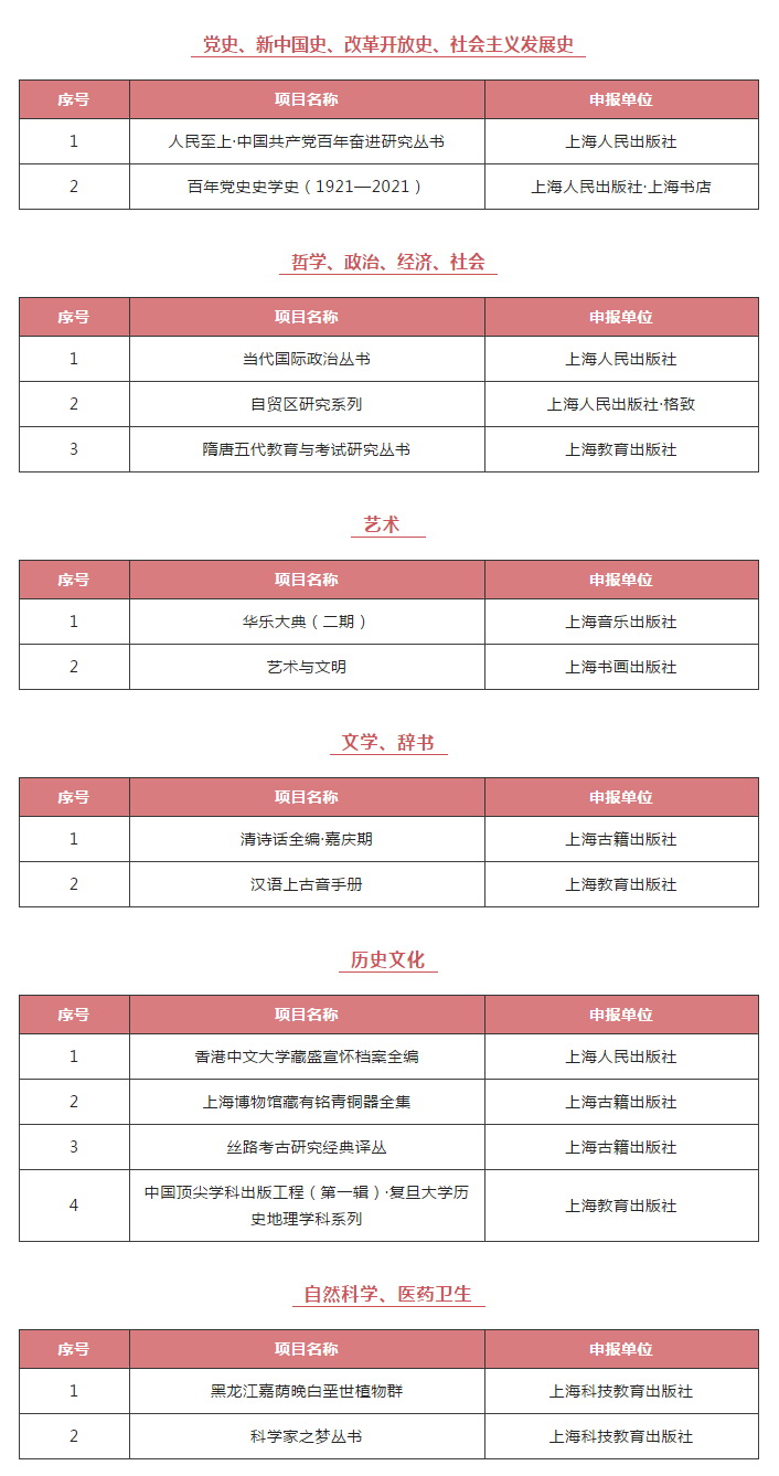 近日,国家出版基金规划管理办公室公示2021年度国家出版基金拟资助项目名单,共405项。其中,上海世纪出版集团共15项入选:上海人民出版社5项,上海古籍出版社、上海教育出版社各3项,上海科技教育出版社2项,上海音乐出版社、上海书画出版社各1项。