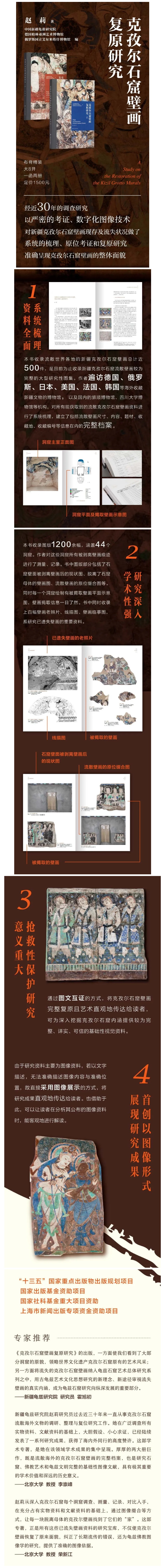 《克孜尔石窟壁画复原研究》赵莉 著中国新疆龟兹研究院德国柏林亚洲艺术博物馆俄罗斯国立埃尔米塔什博物馆 编上海书画出版社 克孜尔石窟现存洞窟345个、壁画近4000平方米,题材繁多、内容丰富,极具艺术魅力,是研究西域历史文化的珍贵资料。 19世纪末20世纪初,外国探险队来到克孜尔石窟,将大批精美的壁画与雕塑从母体洞窟上分割下来,运往异国他乡,这是敦煌文物流失的同时,又一部中国文物的“伤心史”。 20世纪中叶,以黄文弼先生为代表的考古学家和以韩乐然先生为代表的艺术家对克孜尔石窟壁画流失问题给予了极大的关注。1998年,新疆龟兹石窟研究所(今新疆龟兹研究院)为了全面开展龟兹石窟研究,将“克孜尔石窟文物流失研究”列为重点研究课题之一。在霍旭初研究员的带领下,龟兹研究院赵莉研究员承担了具体的考察研究工作。为完成这一艰巨而复杂的工作,她踏遍龟兹石窟,普查洞窟,记录与测量被剥离壁画的痕迹,然后与掌握的流失海外的壁画图片对比核实,排除自然脱落的部分,十分慎重地确定被剥离的数量。 2011年起,赵莉开始全球走访收藏龟兹石窟文物的相关国家的博物馆和美术馆,实地考察,查阅档案,获取资料。她更是花了一年多时间,在收藏流散克孜尔石窟壁画数量最多的德国柏林亚洲艺术博物馆进行彻底调研。 经过充分掌握流散壁画和国外研究资料后,赵莉将流散壁画与现存洞窟对照、缀合、对接、复原。研究工作主要分为两个层面:一是将流失壁画回归母体洞窟原位的复原和残破壁画的整合复原,恢复壁画原貌,纠正记录错误的洞窟和位置;二是壁画真实内涵与“表法”本质的复原,在流失壁画回归原位后,辨析考证壁画内容,以厘清古龟兹人的信仰内涵。 例如,这幅现收藏于俄罗斯国立艾尔米塔什博物馆的壁画,德国柏林亚洲艺术博物馆馆藏编号为3569的档案卡记录此幅壁画出自“Japanerh?hle”(日本人窟),即今第179窟。赵莉通过对壁画题材内容、尺寸以及纹饰对比考证后发现,此幅壁画应该出自第4窟。 再如,第224窟是目前发现被揭取壁画数量最多的洞窟,被揭取近百幅壁画。这些被揭取的壁画目前散落在世界各地,分藏于德国柏林亚洲艺术博物馆、美国国立亚洲艺术博物馆、美国纳尔逊-阿特金斯艺术博物馆、法国集美博物馆等多家海外博物馆,赵莉对这些壁画皆做了调研梳理研究。除此之外,赵莉对洞窟被揭取壁画的遗失状况也做了考察、统计,她大量借助老照片、线描图、彩绘图等资料,以多种样式研究复原壁画的面貌。 克孜尔流散壁画的调研和复位工作,是一项细致而繁复的劳作,也是学术性很强的研究实践。《克孜尔石窟壁画复原研究》这部著作的出版,正是赵莉研究员及其团队,几十年如一日,传承和守护克孜尔珍贵文化遗产的成果与见证! 希望借由本书的出版,能为学术界尽可能较为完整地提供世界文化遗产——克孜尔石窟壁画的图像资料。 ——赵莉