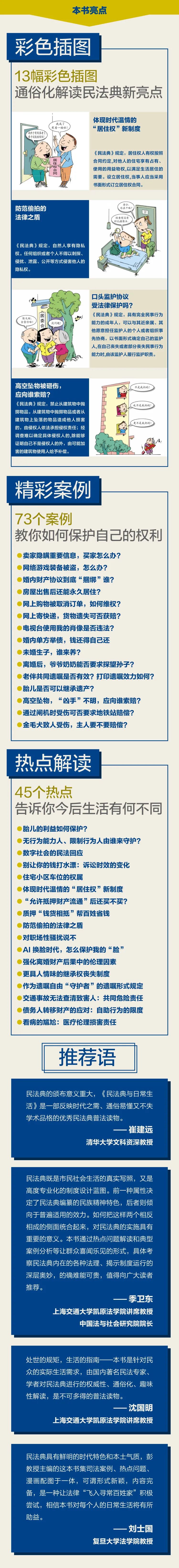 本书自2020年7月出版以来,已经连续印刷8次,销售近15万册,荣获2020年度“中国好书”、《中国新闻出版广电报》2020年度好书、2020年百道好书榜社科类TOP100,入选2021年3月华文好书榜、2020年向全国老年人推荐优秀出版物、2020年农家书屋重点出版物推荐目录,并亮相央视《读书》节目、“学习强国”平台等。这反映出社会各界对《民法典》知识的巨大需求。老百姓积极主动学法典、用法典的行为本身,反映出人民群众法治意识的提高,也是我国法治建设成就的生动体现。