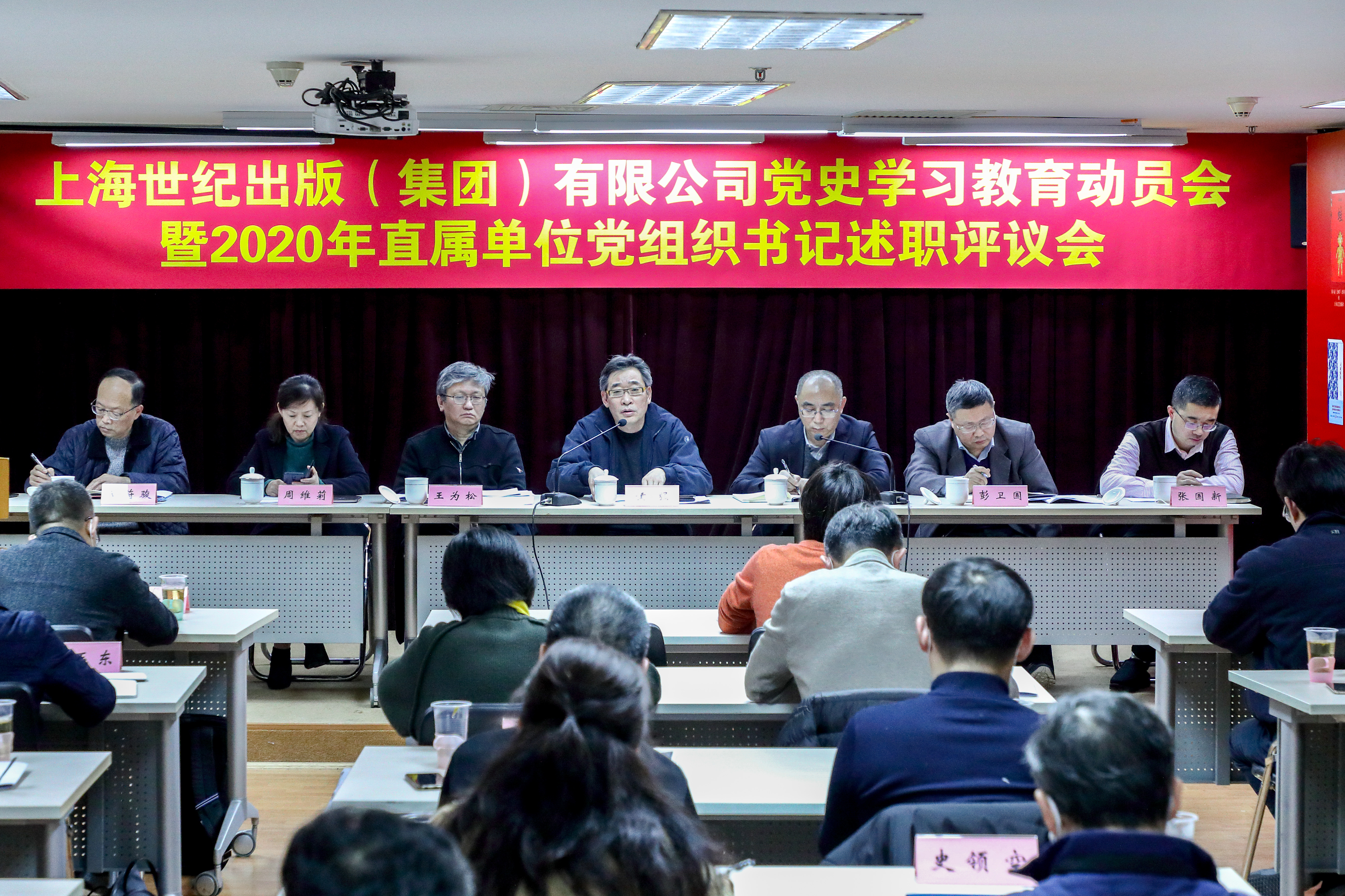 2021年3月19日下午,上海世纪出版集团党委召开党史学习教育动员会暨2020年直属单位党组织书记述职评议会,深入学习贯彻习近平总书记在党史学习教育动员大会上的重要讲话精神,对集团开展党史学习教育进行动员部署。同时,贯彻宣传系统党的建设暨纪检工作会议精神,开展直属单位党组织书记抓基层党建和党风廉政建设工作述职评议,并研究部署今年的党建工作任务。集团党委书记、董事长黄强出席会议并讲话。集团党委副书记、总裁阚宁辉主持会议。