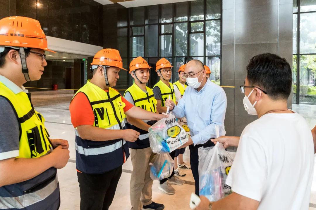今年夏季疫情防控、防台防汛任务繁重艰巨,集团党委领导心系高温下坚守工作岗位的职工。2021年7月14日至8月20日,集团党委书记、董事长黄强,集团党委副书记、总裁阚宁辉,集团党委成员李远涛、彭卫国、周维莉、张国新、毛文涛等,冒着酷暑分赴世纪出版园、上海中华印刷有限公司、上海世图物流有限公司、上海图书有限公司、上海外文图书有限公司、朵云轩艺术中心、朵云轩南京东路门店、朵云书院等集团所属基层单位,深入户外场地、园区工地和印刷机台、物流库房、销售柜台等重点工程工地、户外工作岗位和对外窗口单位等,走访慰问一线职工,并为他们送上防暑降温用品。