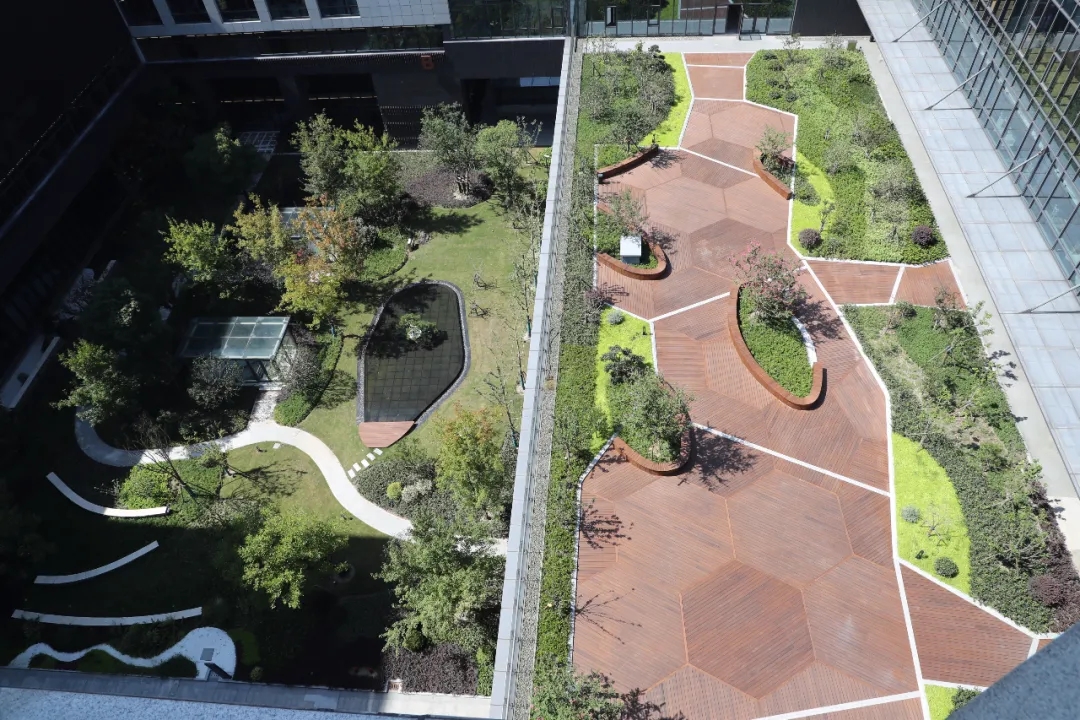 依托周边庞大的生态体量,打造“花园体验”的智能化办公环境。建筑层叠抬升的绿化露台,使得建筑和自然景观融为一体。这个被绿意环绕的园区,将以更加灵动的空间刷新传统出版人的工作模式。