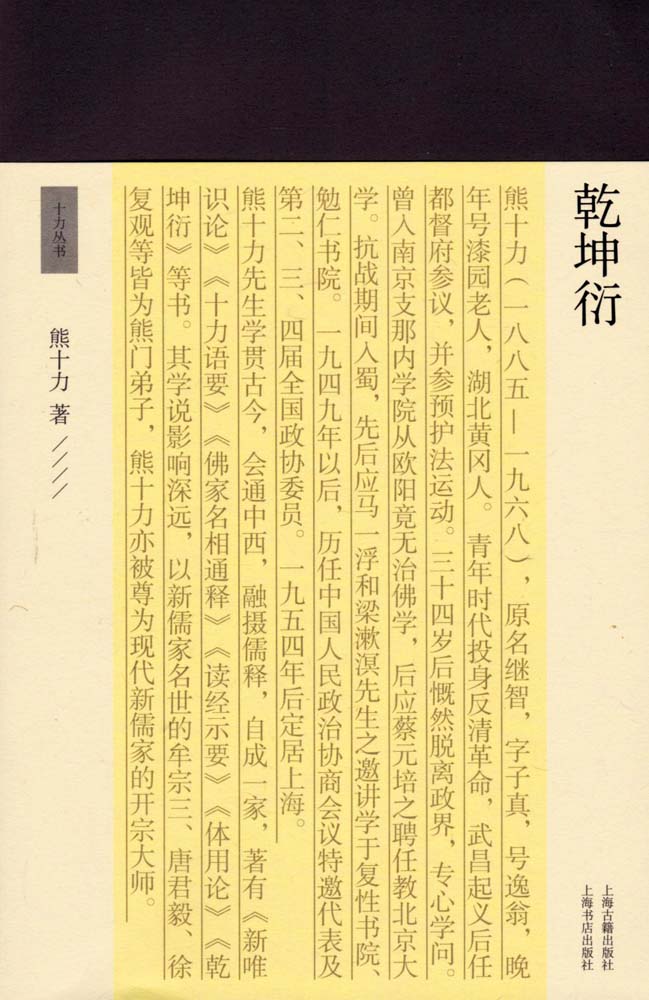 熊十力自述其哲学思想的演变轨迹,自佛教唯识学(有宗)入,进而探究空宗,后悟入《大易》体用不二之义。其1932年出版的《新唯识论》从唯识学脱胎而来;1958年出版《体用论》,乃从自我体系立论,不复借助唯识学的理论框架;1961年写成影印《乾坤衍》,是对于《易经》乾坤二卦大义的推演,一方面揭示自家思想的来源,重申其归本《大易》之意,一方面对于现存《周易》文本的不同思想来源作出分析评判。