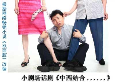 《双面胶》因为描写一位受过良好教育的现代女性在家庭中遭遇的不公和暴力而深受女性读者关注,很多已婚女性表示书中的很多情节都发生在她们的现实生活中。但话剧版《双面胶》的制作人却将该剧改成了男性的视角。话剧版《双面胶》的名称定为《中西结合,要你命》,创意来源于某药品的电视广告,广告中一个男人被老妈和老婆拽来拽去,一个说中药好,一个说西药好,制作人打算通过这个名字来表现男人所遭受的夹板气。制作人表示,他自己为了前女友,曾和妈妈战争了整整三年,个中苦痛现在想来还是惨烈异常。所以希望话剧版《双面胶》能凸显一下男人的痛苦。