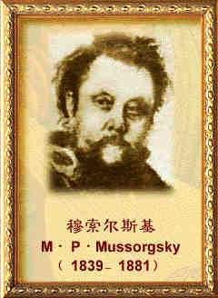 莫杰斯特·彼得罗维奇·穆索尔斯基(1839-1881)是俄罗斯著名的作曲家,俄罗斯乐派“强力集团”的重要成员之一。他1839年3月21日出生于普斯科夫省卡列沃镇的一个地主家庭,但很早就熟谙农民生活。五岁开始从师于母亲学习音乐,然后跟海克尔学习,几年后成了杰出的钢琴家,并进行即兴演奏和创作。由于其父不同意他成为职业音乐家,在他十三岁时就把他送进近卫军军官学校学习。他毕业后虽然担任军职,但他从未中断过音乐学习,并在创作实践中积累了丰富的经验,所以很早就显示出惊人的创作才能和丰富的想象力。穆索尔斯基为俄罗斯古典音乐艺术作出了贡献。他创作的歌剧《鲍里斯·戈都诺夫》、《荒山之夜》、钢琴组曲《展览会上的图画》、歌曲《跳蚤之歌》等都是世界音乐宝库中的珍品。
