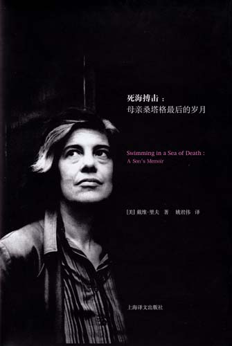 附带说一句,此书原名Swimming in a Sea of Death:A Son's Memoir,译后记说:“戴维·里夫的《死海搏击——母亲桑塔格的最后岁月》是一本痛苦的书。书中记录了他母亲第三次罹患癌症后接受治疗的痛苦经历,她拒不接受死亡的心态,以及她意识到自己在死亡这个问题上并非她一厢情愿所认为的与众不同时的无奈、不甘与恐惧。”中译本书名里“搏击”一词,稍嫌过于强调大限将至时她主动性的一面了。