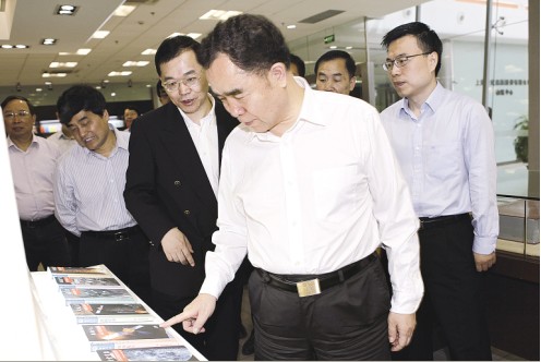 新闻出版总署办公厅主任范卫平、出版管理司司长吴尚之、印刷发行管理司司长王岩镔、科技与数字出版司副司长谢俊旗,陕西省新闻出版局局长薛宝勤,西安市副市长韩松,西安国际港务区管委会主任强晓安,上海市新闻出版局局长方世忠,上海世纪出版集团董事长陈昕等分别陪同调研。