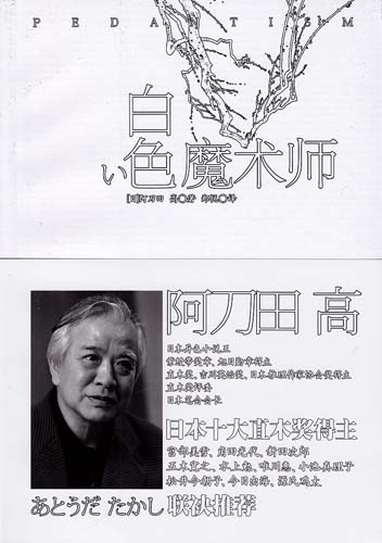 正值中日邦交正常化40周年之际,近80高龄的日本笔会前会长、日本异色小说王阿刀田高日前专程来沪,参加2012上海国际文学周暨“书香·上海之夏”系列活动,与中国作家莫言共同探讨小说为何而存在。 阿刀田高1969年开始发表作品。1979年,其作品《来访者》获日本推理作家协会奖,短篇小说集《拿破仑狂》 获直木奖。1995年,《新特洛伊物语》 获吉川英治文学奖。2003年获紫绶带奖章,2009年获旭日勋章。迄今已出版作品近百种。上海译文出版社近期推出其四部作品,包括《黑色回廊》、《白色魔术师》、《蓝色圈套》 和 《红色诱惑》,分别围绕恐怖惊悚、奇谈轶闻、黑色幽默、男女之间,每部各有十至十二则短篇故事,优中选优。莫言曾高度评价阿刀田高的作品。 此次,对谈的主题是由阿刀田高提出来的,他说他已经写了40年,但这个问题一直在他的脑海中。他比较赞同艺术要为个体而存在这一说法。而莫言也认为,创作最宝贵的本质就是个性的表现、个人情感的流露、个人风格的体现。阿刀田高还表示,随着年龄的增长,他越来越觉得,作家还有一个非常重要的使命,就是把本国的美好语言传承下去,向年轻人展示。这也是为什么大家对很多经典作品情节已经烂熟于心,却仍会一遍遍阅读的原因,这就是语言的魅力。对此,莫言极为赞同,他说,小说家和文学家的区别在于,文学家创造了自己独特的文体,对自己母语的发展作出了贡献。世界上小说家很多,但能配得上文学家桂冠的寥寥无几。
