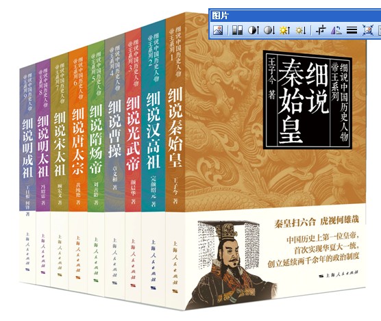 1.《细说秦始皇》 王子今 著 定价 29元 2.《细说汉高祖》 完颜绍元 著 定价 35元 3.《细说光武帝》 颜晨华 著 定价 27元 4.《细说曹操》 章义和 著 定价 32元 5.《细说唐太宗》 黄纯艳 著 定价28元 6.《细说隋炀帝》 刘善龄 著 定价 30元 7.《细说宋太祖》 顾宏义 著 定价32元 8.《细说明太祖》 冯绍霆 著 定价32元 9.《细说明成祖》 王日根 何锋 著 定价27元