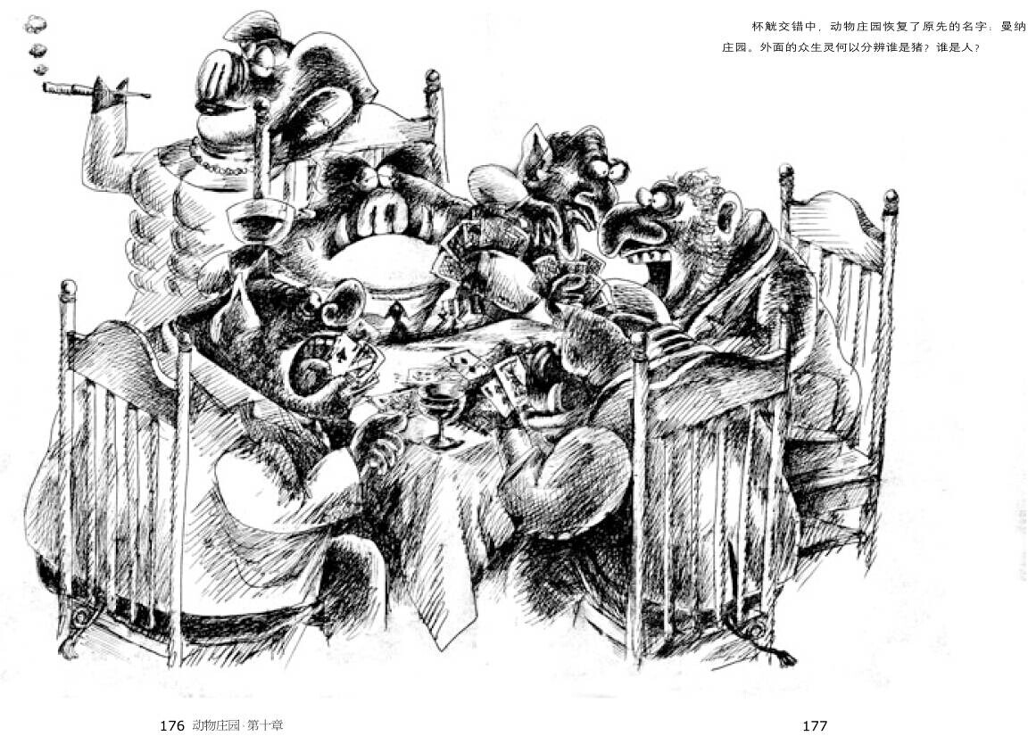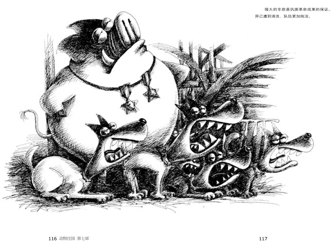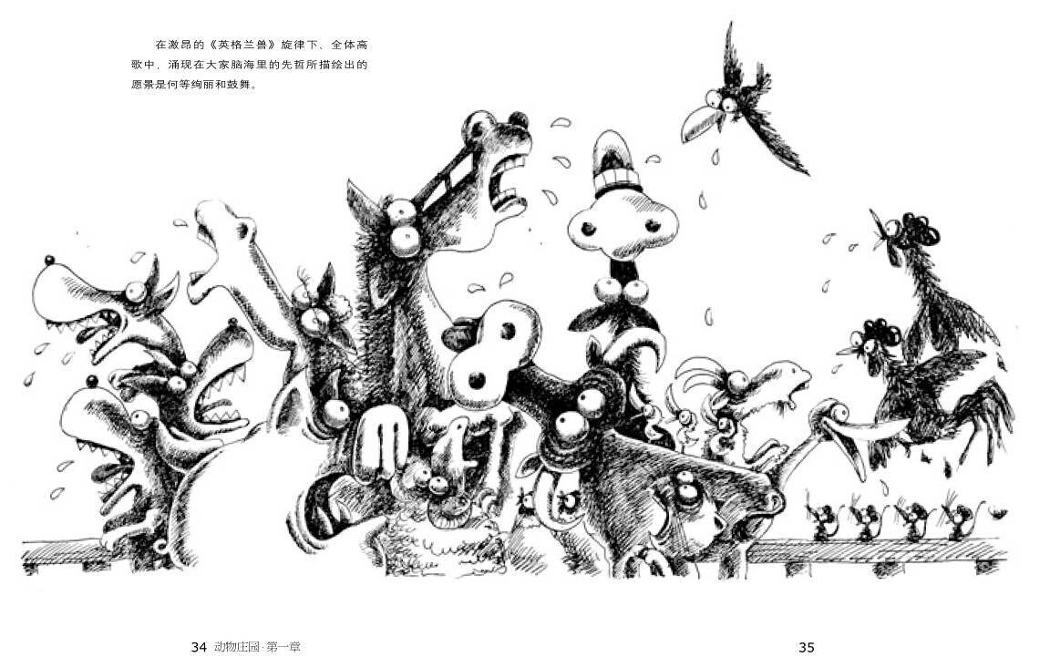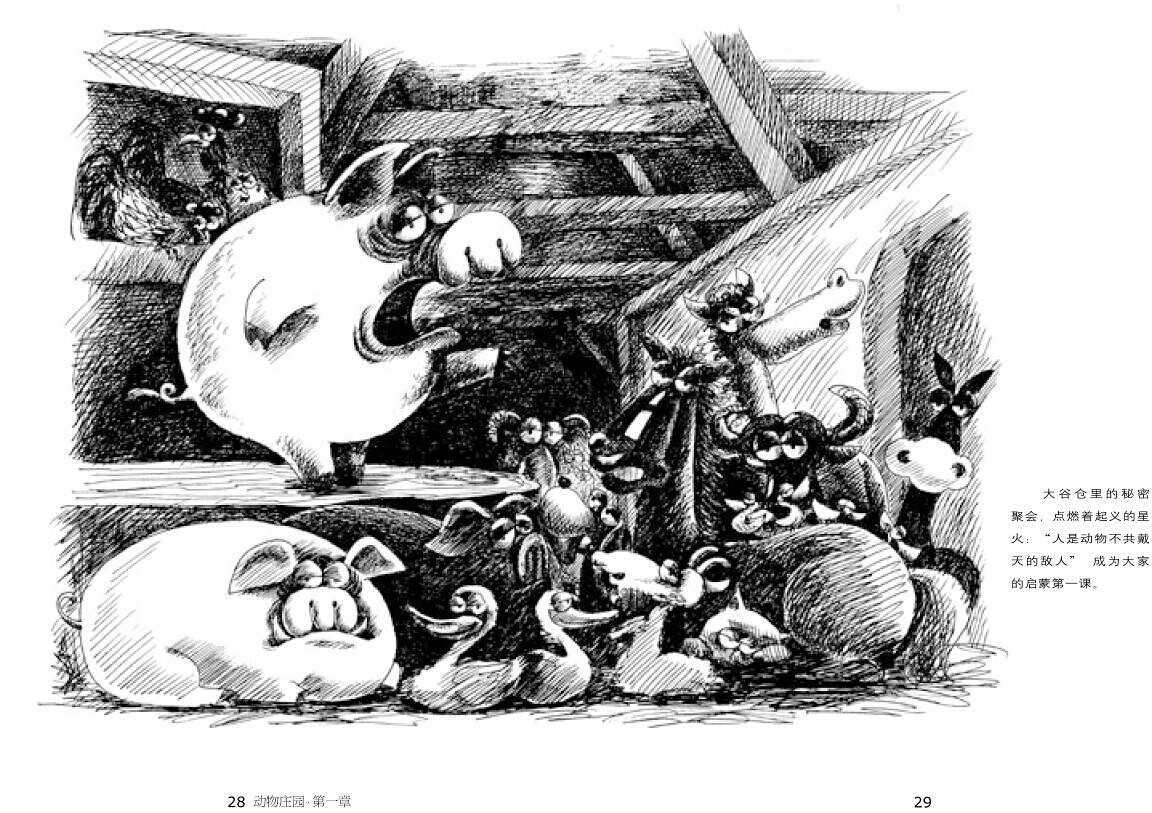 《动物庄园》立体书封 作为乔治·奥威尔七十周年的一个纪念,出版一个珍藏纪念版是我一直想做的一件事。 26年前,它是1949年之后大陆最早的一个中译本,现在我们要做的事是让它成为中国最好的一个中译本。 好,不仅仅指内容和译文,还包括形式。 如何体现? 几乎是在确定出版这个纪念版的同时,装帧的匹配性就是我们思考的重点。匹配,既是与书的内容的匹配,同时也是与纪念版的含义匹配。经过与设计师多次的方案探讨,目前这个版本的设计理念和制作是这样的: 精装封面的木质质感上凹凸有致地深深刻着年轮,象征着曾经的岁月和永恒的记忆,历史的风风雨雨荡涤的是浮尘,而经典终将愈久弥新。年轮暗合着纪念,彩烙纸的特性使得热烙部分呈现出深色和凹下去的感觉,正好与年轮的纹理和触觉匹配。 白色的涂鸦般随意书写又充满夸张和力量的英文书名让人感觉街头革命的气势,与咖啡色前后环衬上的漫画涂鸦手法互相呼应,让人回忆起不久前人类历史上最大的一场波普运动残留的痕迹。但印刷的局限使得白色无法很好地体现,经过前前后后多次试验,终于找到了粉批这样一种工艺,使得那种狂飙式的书写得以体现。也是对过去曾经历史的某种纪念和反省。 黑色烫金的中文书名在热烈激情的英文书名反衬下显得简朴。是啊,真理本来就是朴素的,再漂亮的辞藻再鼓噪的宣传机器虽然可能流行一时,但终究是会被打回原形的。 有趣的是,整个封面运用了多种工艺:年轮的凹凸是用了热烙工艺,白色的涂鸦用的是粉批工艺,而黑色的书名用的则是烫金工艺,唯独没有使用惯常的印刷术。这是不是也暗合了某种“珍藏”的理念呢? 当然最有看点的还是漫画。30幅钢笔插图无论从立意、还是造型,都颇为传神地表达了原著中蕴含的冷峻、夸张、讽刺、幽默、心酸和内里依然深藏的热情和对理想的向往。 这在《动物庄园》所有版本中恐怕是独一无二的。 许多细节设计也颇具匠心: 咖啡色的环衬与封面的木纹颜色是协调的。 前言后记的淡绿色衬托出的某种雅致和正文的波普风格则是对照的 一根黑丝线在实用功能外,是不是也是对某种轰轰烈烈大潮退潮或者变异后的殇呢? 而前言后记与正文的分色切割恰到好处,这肯定不是出于巧合。 也有遗憾:腰封的尺寸计算有误,使得腰封文字的接口对准了封面就对不准书脊,对准了书脊就使得与封面的文字错位了。那就只有留待重印时改正了。 遗憾难免,但当切切实实触摸到实体书时,我还是切切实实地感到了一个书人的欣慰。我可以对奥威尔和他的读者这样说:我做了一本匹配得上原著并且让自己满意的好书。《动物庄园》(插图珍藏纪念版)乔治·奥威尔著,张毅、高孝先译,赵为群插图和设计