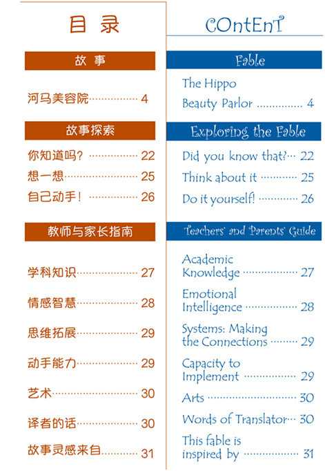 食物系列的少年儿童生态教育课程结束之后,2014年10月20日上午在上海师范大学附属第三实验学校,健康系列的课程继续展开。 什么是健康?健康的标准是什么?围绕着这些问题,学生们在课后查阅了大量的资料,在课堂上以小组讨论的形式交流,并将整理好的资料做成PPT展示出来。 人类的健康可以从身体、精神和社会三个方面来分析,那么动植物的健康又有什么标准呢?在《河马美容院》中,小鱼们和河马的故事为我们解答这个问题提供了一些思路。书中,小鱼来到河马生活的水域里,对河马来说到底是好事还是一件坏事呢?如果没有小鱼,河马的生活将发生怎样的改变?带着这些问题重新阅读《河马美容院》这本书,同学们又有了更多新收获。 本次课程的一个创新环节是“读一读 演一演”,每个小组的同学分配角色,有扮演河马妈妈,有扮演河马女儿,有扮演小鱼,还有负责旁白,大家声情并茂地把故事用表演的形式展现出来。这种表演的教学方式增加了学生们的参与感,丰富了课程表现形式,活跃了课堂氛围,更能激发学生们的学习热情。 在介绍了河马的相关知识之后,老师引导学生们继续深入分析河马生活在怎样的一个生态圈中。水中若是没有鲮鱼、鲃鱼、墨头鱼,会出现什么情况?水中若是没有河马,河水中的鱼又会出现什么情况?随着问题的层层递进,我们可以知道河马和水中的各种鱼是一种共生的关系,那么在自然界中,除了互利共生,还有什么其他的关系呢? 老师给出了杜鹃鸟和大苇莺、鲨鱼和向导鱼的例子,引出了动物之间寄生和共栖的关系,并用填表格的方式分析这些关系中几方获利、几方受害。在填表格的过程中,同学们自己分析得出结论,加深了对动物之间关系的理解。 课后作业: 1.举例说明寄生现象是否有不利的一面? 2.阅读《用鼻子和耳朵去看》,查阅海豚、蝙蝠相关资料,以及二者在人类仿生学上的应用,并制作图文并茂的PPT在下堂课做讲解。 课程资料: 书名:《河马美容院》 作者:冈特·鲍利 ISBN:978-7-5486-0648-2/G.212 定价:10元 出版时间:2014年4月 内容介绍: 河马妈妈轻松地坐在河床上,就能享受美容院的各种服务。因为有很多好邻居会帮他打理,鱼类会把她的皮肤清洁干净,把长在背上的海藻吃掉,让她更粉红好看,还会帮她把牙齿清洗干净……生物们利用各种共生的方式生存着,就像当我们生病或过敏,也会有无数个看不见的生物活动,负责保护我们的身体回到平衡状态。