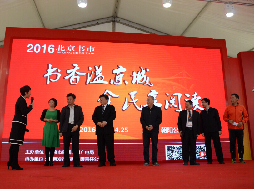 2016年4月15日,为期11天的“2016北京书市”在朝阳公园开幕。韬奋基金会理事长、中国出版协会副理事长聂震宁,北京市市委宣传部出版处处长郑俊绑,北京市新闻出版广电局副局长王野霏,北京发行集团党委书记、董事长、总经理李湛军等出席开幕式。