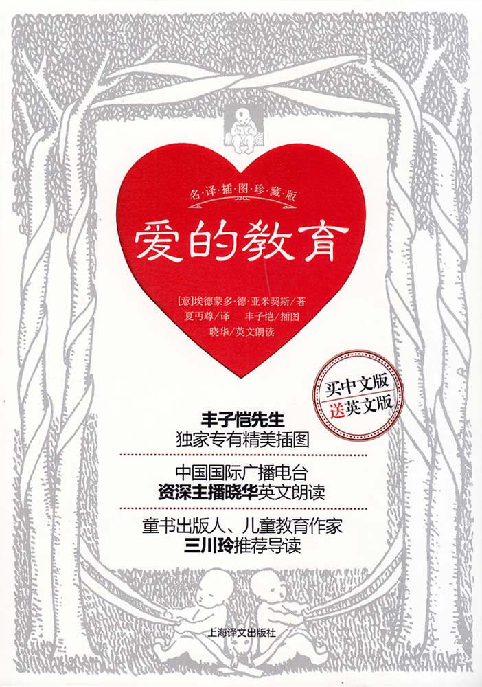 导语 埃德蒙多·德·亚米契斯编著的《爱的教育(赠英文版名译插图珍藏版)》这是一本日记体的小说,以一个意大利小学四年级男孩安利科的眼光,讲述了从四年级10月份开学的第一天到第二年10月份在校内外的所见、所闻和所感,全书共10卷,由100篇文章构成,包括发生在安利柯身边各式各样感人的小故事,还包括亲人为他写的许多劝诫性的、具有启发意义的文章,以及老师在课堂上宣读的9则感人肺腑的每月故事。通过塑造一个个看似渺小,实则不凡的人物形象,在读者心中荡起一阵阵情感的波澜,使爱的美德永驻读者心中。整部小说以一个小学生的眼光审视着身边的美与丑、善与恶,完全在用爱去感受生活中的点点滴滴。