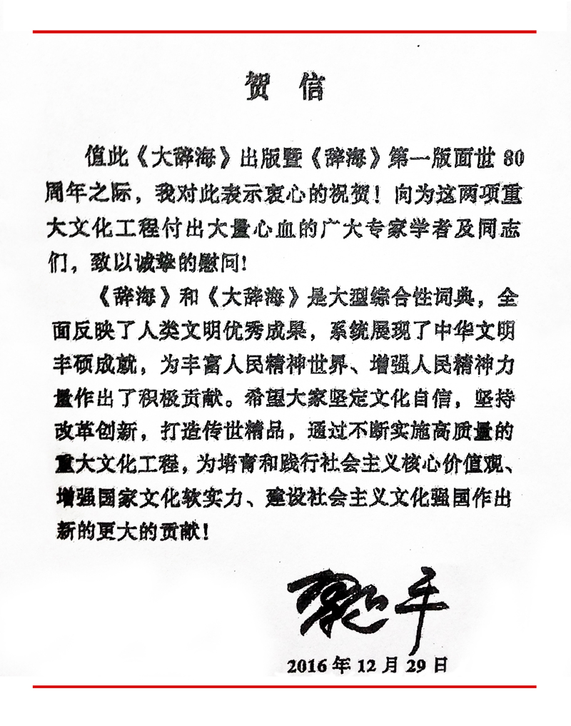 习近平总书记致《大辞海》出版 暨《辞海》第一版面世80周年的贺信