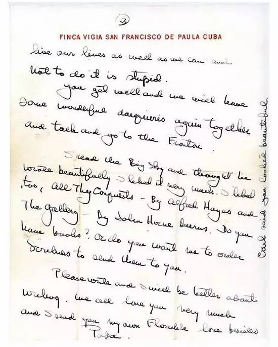 从海明威的书信集里,我们能看到什么?他一辈子都在给自己找活儿干:苦活儿,重活儿,肉体上的,精神上的。这些活儿不来折磨他的时候,孤独就来折磨他。这种时候他总是写信。“寂寞得要死,快给我来信”,“给我写信,我孤独得要命”,“此地我认识的人都走了,一个魂都不在。跟博伊恩瀑布一样寂寞”,这类句子在他的信里随处可见,俯拾皆是。而他在写给一位女友的信中,也直白地承认:“我写信是要让你开心,也因为我孤独。”海明威书信真迹 海明威到晚年,曾经的朋友相继离世,加上他自己以及亲人的伤病,孤独感更加强烈。在许多信的开头或末尾,他为自己的信越写越长而感到抱歉,并提议对方如果觉得信写得无聊,就把它烧掉。在他生命的最后几年,海明威时常一个人坐在某间屋子里,被数量庞大的猫咪和一只黑狗包围着,感到自己无法写作。而年轻时他有过那么快乐的时光:和真正的男子汉一起钓鱼、打猎,在营地的篝火旁扯淡、吹牛。看看他20岁出头在信里写过的一段话吧: 上周首轮月色我们不是说一等一吗?在营地大家伙卷在毯子里,营地的火烧得只剩炭了,那才叫棒。人家都睡了,你独自看着月色,悠悠思绪万千。在西西里人们说与月同眠是件奇异的事情,月光照在你的脸上。月亮敲击着夜。也许正是那令我感觉疼痛。 “也许正是那令我感觉疼痛。”即使海明威是个实打实的硬汉,他也是个天生善感的硬汉。也许一个同时拿枪和拿笔的人,总会觉得孤独吧? 跟随海明威45年里(1917-1961)的大量信件,我们还发现了许多他不为人熟知的侧面以及生命中的动人细节。当然,如果抱着寻求彼时文人八卦的心理去阅读——好吧,虽然不建议,但你也绝对会满载而归。 “战争英雄” 1918年,19岁的海明威来到一战时期的意大利战场上。一开始他担任美国红十字会的救护车司机——在美国他因为视力问题而未能参军——但不久他就声称脱离了这个岗位,在意大利军队里成为“二等军士”。他的任务是为前线的战士运送巧克力和香烟。不过,就是这活儿差点要了他的命。一颗迫击炮的炮弹在他身边炸裂,在他身上造成227处伤口。不过在给家人的信件中,他仍然做到尽量乐观:“这里的医院真是桃子一样甜美。18个美国护士照顾4个病人”,“手术的确完美。我左脚底有个约8英寸长的疤,上面则有个干净的小刺孔……爸,我永远也穿不了苏格兰短裙了”。他还专门给自己的伤画了一幅示意图。 而实际上这次战伤(尤其是膝盖处的伤)给他的晚年生活造成了极大的负面影响。 1919年,海明威从战场回到家乡,但他对家乡的反应抱有强烈的嘲讽态度。海明威在给战友的信里这样写道:“这里人试图把我弄成个英雄,但你知我知真正的英雄都死了。假如我自己真的是拼命三郎,我也早就死了。我知道是这么回事,并希望命运不挑头颅的尺寸。” 这次战争经历还深刻地影响了海明威的个人价值观。不错,军队生涯帮助他成为一个严格自律、追求男子气概的人,但他从此一直对国家政治不甚关心。在他思想成熟时期,他具有明显的无政府主义倾向和反战倾向。1933年,他在和友人讨论希特勒的信件中这样说道:“战争是国家的健身运动。任何有国家概念的人都得发动战争,或者威胁发动战争,以使国家运转。” 神枪猎手和捕鱼专家 “写作之外,我有两项开发得很好的天分:在大海里钓鱼,在有湍流的时候,在有鱼群迁徙的时候;第二个天分是用来复枪打猎。射程不确,目标却准得很。不一定打中要害,却一定击中目标。”海明威在1934年给友人阿诺德·金里奇的信中这样写道。 这话真不是吹的。细数他在信件中提到的猎物和鱼类,两者种类数目相加至少多达52种,其中水中生物30种,鱼类达26种,鸟禽类10种,还包括灰熊、公牛、狮子、鲨鱼等大型动物(当然,今天这类捕猎是不合法的)。 猎物:狐狸 鹿 野猪 野鸭(绿头鸭、针尾鸭)鹌鹑 土拨鼠 灰熊 松鸡 野鹅 驼鹿 泥鸽 燕鸥 喜鹊 公牛 羚羊 鹰 狼 野山羊 狮子 锦鸡 山鹑 水生物:水蛇 绿龟 海豚 刺鱿 虹鳟鱼 鲟鱼 鲈鱼 鲑鱼 金枪鱼 青枪鱼 白枪鱼 三文鱼 大狗鱼 大月鱼 黄尾 红鳍笛绸 石斑 大海鲢鱼 剑鱼 旗鱼 鲐鱼 魣鱼 大眼泡鱼 鲨鱼 大眼鱼 无缥石首鱼 马林鱼 梭鱼 青花鱼 卡瓦拉马鲛鱼 海明威也向来以射击精准而自傲。1931年在给儿子的信中,他说:“我对基督发誓,我的射击水平很高。一只手射击跟埃德加·史当东比,一个目标能得20环,并且还赢了两次——当然也输过两次——打平手一次。打过9x10-9x10-7x10-9x10-8x10-6x10。”