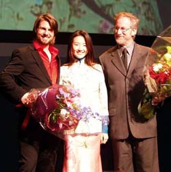 第15届东京国际电影节,于10月26日在东京涩谷的文化村影城开幕,在开幕式上,《少数派报告》导演史蒂芬·斯皮尔伯格和和主演汤姆·克鲁斯与观众见面,中国女演员董洁被选作代表,向两位献了花。27日下午,上映了参赛片《天上的恋人》,这部展现中国山村年轻人优美、浪漫爱情的片子,受到了日本观众的好评,初次到日本的两位主要演员刘烨和董洁人气很旺。28日,该片导演蒋钦民和主演刘烨、董洁参加了电影节组委会主办的记者招待会。有记者预测,本届电影节,唯一参赛的华语片《天上的恋人》,获得奖项的可能性很大。据悉,《天上的恋人》将提早于明年3月(原定5月)在日本公映。