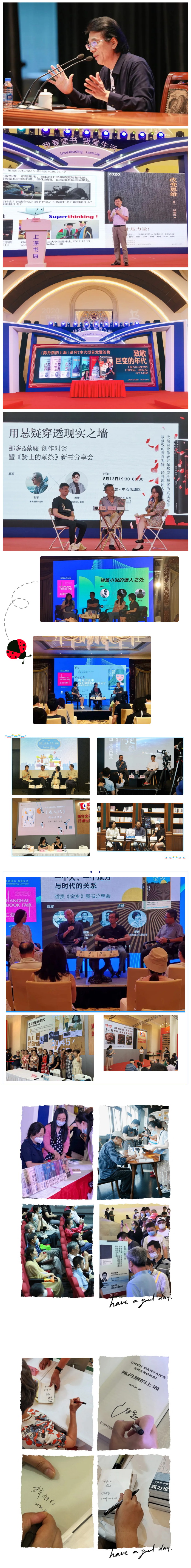2020年书展已经圆满步入收官阶段,感谢大家7日以来的陪伴~ 在这书展的尾声中,又传来喜讯:上海文艺出版社荣获本届书展最有号召力的“十佳”出版社。线下活动精彩集锦 本次书展中,上海文艺出版社给大家带来了近50场活动,为广大读者奉献彰显时代旋律的阅读推广,打造一场满溢书香的文化盛宴,用文学点亮人生。线上活动精彩集锦 今年,我们的作家、编辑、嘉宾走进世纪出版直播间、樊登直播间、当当直播、京东直播等线上平台,用直播的方式给阅读注入更多的活力。“作家餐桌”活动精彩集锦 作为2020上海书展组委会重点品牌活动,“作家餐桌计划”携手孙甘露、徐则臣、祝勇、毛尖、马伯庸、陈楸帆、那多等七位当代中国知名作家,以及严锋、骆新、赵松、俞挺、李筱懿、十二、马俊丰、王占黑、王侃瑜、李伟长、赵若虹、杨蕾等跨界学者、专家,会同国际饭店、绿波廊、锦江饭店、荷风细雨、福和慧、苏浙总会、孔雀厅等沪上七家品质特色餐厅,精选言几又书店,带来“七天—全年”的系列文旅体验活动。 上海书展,精彩延续。上海文艺出版社用文学点亮人生,线上线下融合,破圈跨界加速。期待明年再见!