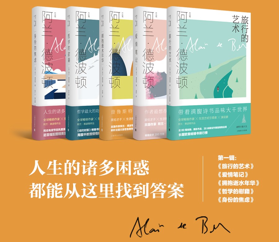 阿兰·德波顿的作品直指当代人生活的痛点与疑惑,无怪乎他的作品大多风靡全球。
