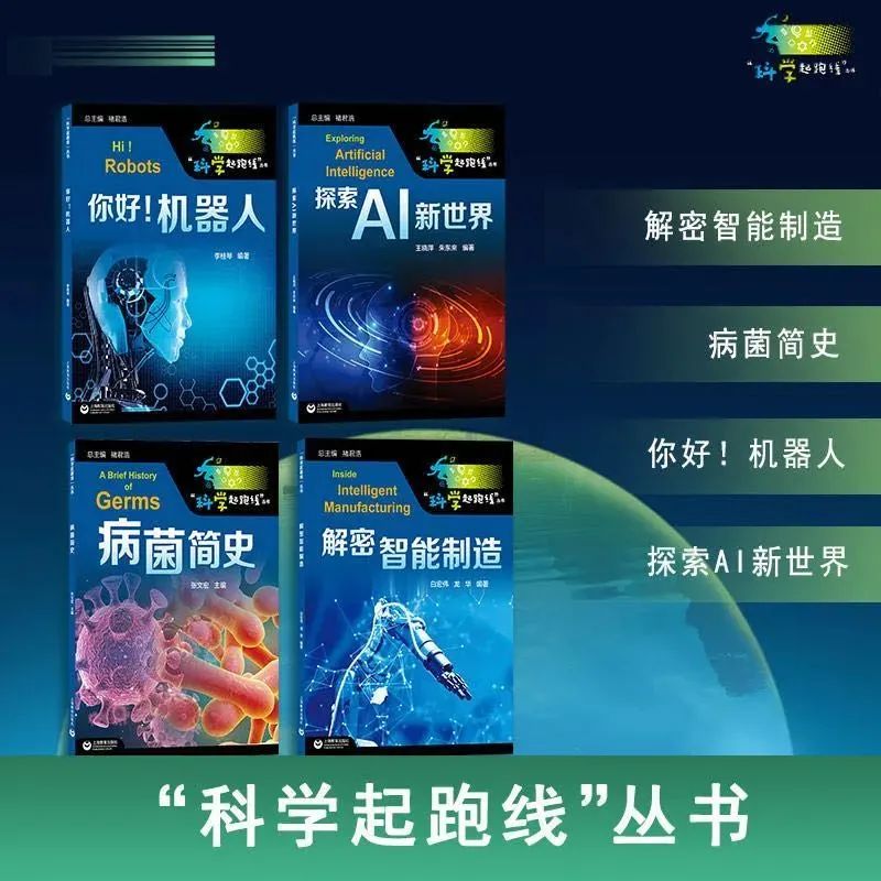 丛书简介 “科学起跑线”丛书由中国科学院院士褚君浩担任总主编,是一套以培养中小学生科技创新素养为宗旨的原创科普读物。通过解读日常生活所见、社会热点问题、前沿科学技术,激发青少年的探究兴趣,让他们在掌握科学知识的同时形成理性的科学思维,从而树立科学的世界观与正确的人生观、价值观。第一辑共四册,包括《病菌简史》《探索AI新世界》《你好!机器人》《解密智能制造》,入选2020年上海书展“云首发”书目。