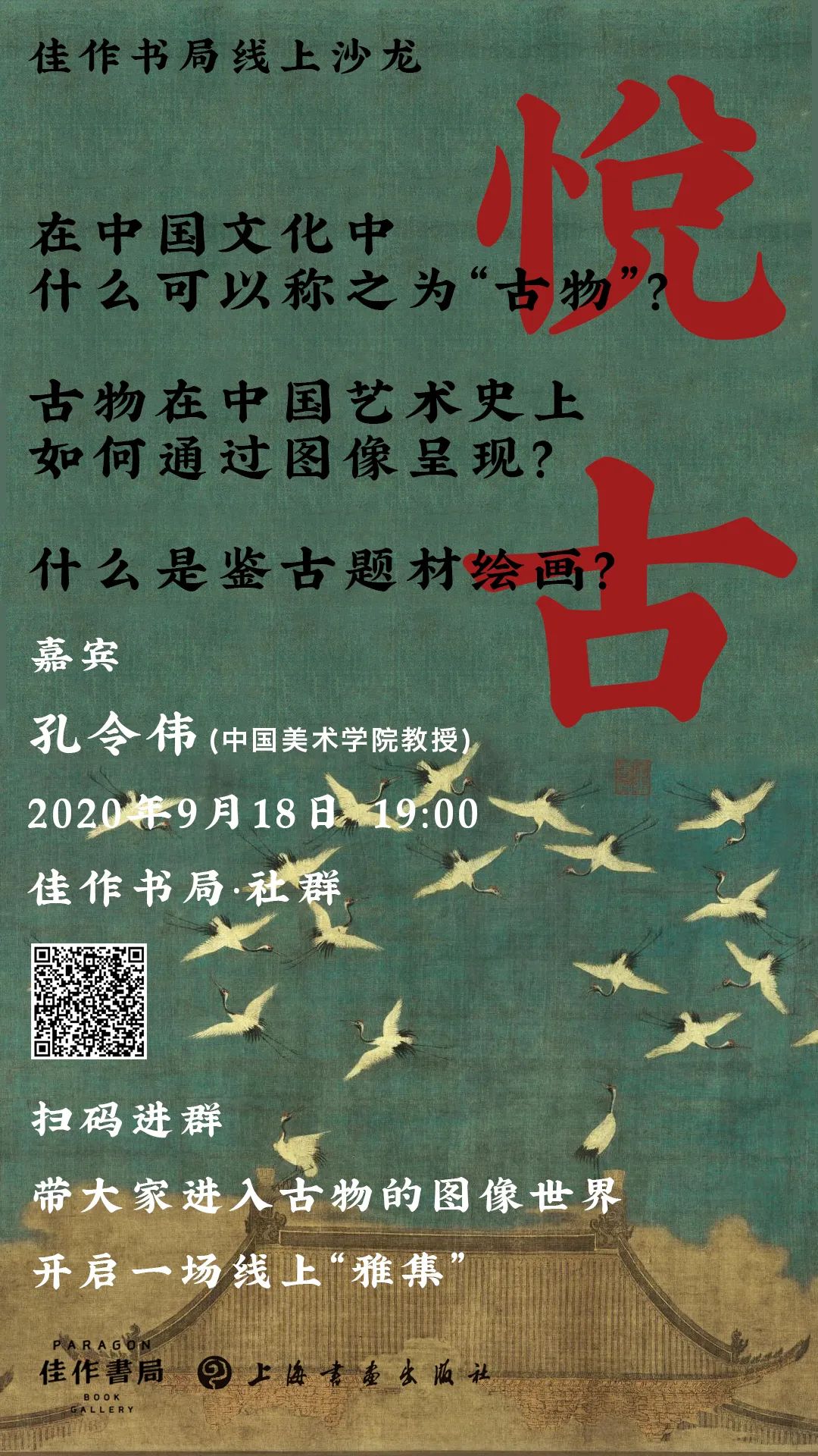 2020年9月18日晚上7点,上海书画出版社联合佳作书局,邀请中国美术学院教授孔令伟老师进行微信社群语音直播,带大家进入古物的图像世界,开启一场线上“雅集”。