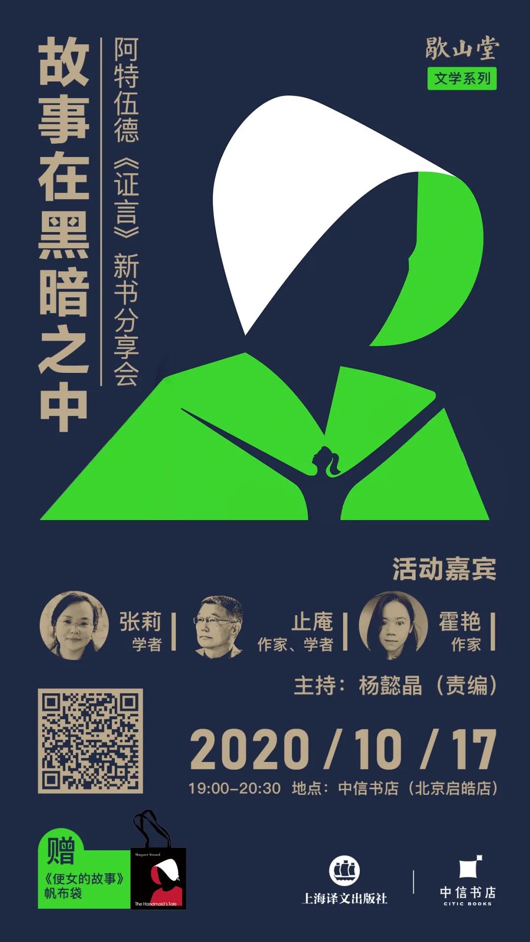 购书参与活动的读者将获得: 活动席位×1 《证言》×1 《使女的故事》(新版)×1 限量版《使女的故事》周边帆布袋×1