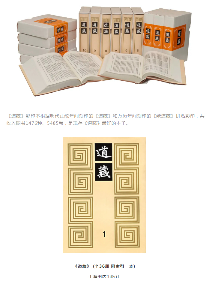 一九八八年四月,《道藏》新影印本正式出版。为十六开精装本,外加盒装,每套三十六册,印装精良。李一氓先生扉页题签,胡道静先生写序,范一辛先生装帧设计。初版共印八百套。意想不到的是不久售完,一九九一年又印三百一十套;以后又多次重印,至二〇〇五年这部定价数千元的《道藏》竟已印了六次,合计二千五百一十套。