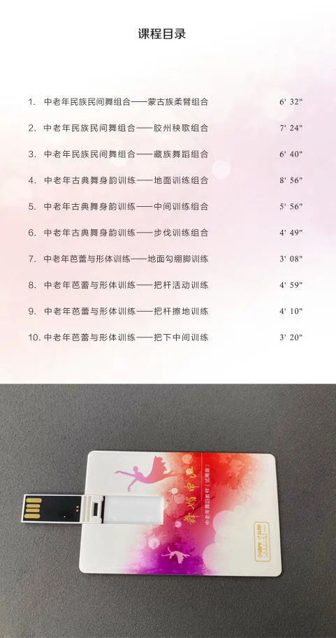 以U盘为载体,内含教学视频和音乐伴奏。