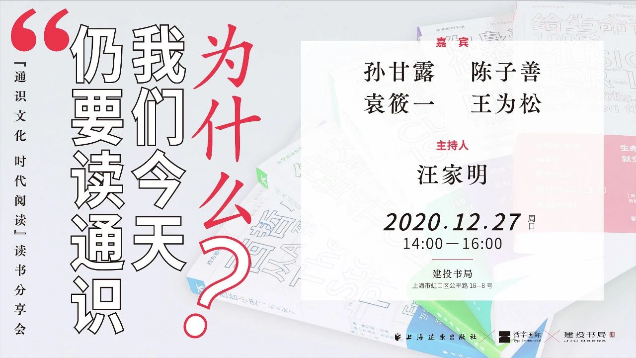 活字通识系列丛书 与/知识对话,做更好的思考者 “活字通识系列”图书——《文化极简史:人物·思潮·建筑的故事》《给生命音乐:100首》《你身边的伦理学:20个大问题》《最伟大的哲学书:20本》和《西哲小史:从A到Z》,分别从历史、文化、音乐、伦理学以及哲学层面为读者呈现极富趣味性的通识知识,引导人们做更好的思考者。 “活字通识系列”图书在丰富读者知识储备的基础之上,于审美和思想方法方面注入全新的元素,使呈现的内容富有独特的趣味性却又不失永恒的普遍意义,探讨的话题精巧简约亦不乏博奥深刻的道理。阅读通识文化,探寻生命中“知-思-美”之间的完美平衡。 《文化极简史:人物·思潮·建筑的故事》作为一部文化漫游指南,引领读者在上下两千年世界历史中游览。本书从法国伽利玛出版社引进,作者是法国通识领域的明星搭档——弗洛朗斯·布劳恩斯坦和让-弗朗索瓦·佩潘,他们用平易近人的方式讲述人类历史中坐标式人物、思潮和文化遗产的故事,深挖那些闪光名号背后鲜为人知的秘密。 《给生命音乐:100首》是著名音乐评论家费欧娜·梅铎的乐评合集,通过对100首古典音乐作品的解读,重温四百年来音乐大师们的内心世界,为读者开启窥访生命的一扇扇窗。 《你身边的伦理学:20个大问题》的作者朱利安·巴吉尼,被誉为英国哲普天王。他从身边的问题出发,敏感地发掘出生活中的道德悖论。站在是非善恶之间,他拒绝提供明确的答案,而是带领读者感受伦理思辨的魅力。 《最伟大的哲学书:20本》和《西哲小史:从A到Z》是两本哲学普及读物,前者从具体的哲学著作入手,后者着眼于哲学家和哲学流派,幽默风趣地讲述那些平时大家望而却步的哲学著作、哲学家及哲学思想。哲学并没有大家想像得那么可怕,只要选对了领路人,人人都可以像哲学家一样思考。聊时代阅读,谈文史哲思探繁华生活,思人生意义 看通识文化如何在阅读时代绽放异彩?探文化哲思如何启蒙现代人理性思考?“与知识对话,做更好的思考者”,12月27日,建投书局等你来!(报名方式见文末~)特约嘉宾孙甘露作家,上海文联副主席,上海作协副主席陈子善学者,华东师范大学教授袁筱一翻译家,文学评论家,华东师范大学外国语学院院长王为松上海世纪出版集团总编辑,上海人民出版社党委书记、社长、总编辑汪家明出版家主持人汪家明时间2020年12月27日(周日)下午14:00—16:00地点上海市虹口区公平路18—8号的“建投书局”主办方上海远东出版社传世活字国际文化传媒(北京)有限公司建投书局