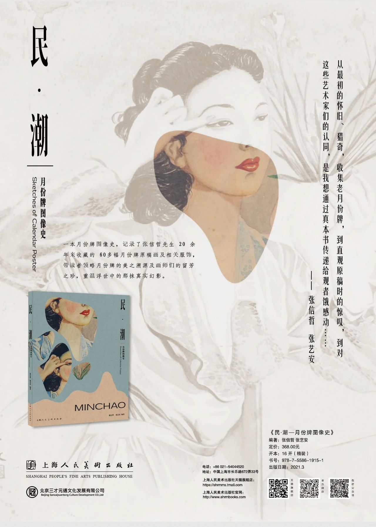 2021年3月24日《民·潮——月份牌图像史》将在上海人民美术出版社天猫旗舰店、上海人民美术出版社官方微店正式发售!《民·潮——月份牌图像史》编著:张信哲 张艺安定价:368.00元开本:16 开(精装)书号:978-7-5586-1915-1出版日期:2021.3