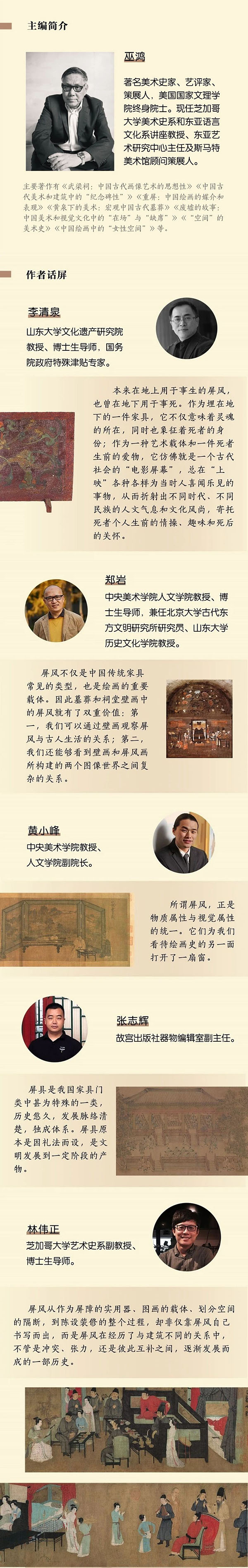 2019年苏州博物馆举办“画屏:传统与未来”特展, 策展人巫鸿说, 画屏在古代中国美术中具有独特的“三位一体”身份: 它既是一种极为重要的绘画媒材, 又是可供近距离欣赏的以不同材料制成的物品, 还是协助建构室内外空间的准建筑构件。 通过这个展览,我们看到,屏风是多面的,融合了物品,图像,空间,“三位一体”;看待屏风的视角也要很多元才行,毕竟它穿越了古今,横跨了时空,既是传统,又有未来。它源于生活,然而最终仍是要回归到生活中去的。 虽然展览结束了,关于“画屏”的讨论和研究还在继续~ 于是便诞生了这本由巫鸿教授主编的《物绘同源:中国古代的屏与画》。 这本书以“画屏”为切入点,聚焦于中国古代艺术中“屏”与“画”的共生,也是对画屏这一独特艺术形式的首次集中讨论。《物绘同源:中国古代的屏与画》[美]巫鸿 主编定价:98.00元上海书画出版社主旨聚焦中国古代艺术中“屏”与“画”的共生体现屏风与画屏在中国艺术史中的关键地位展示中国美术的独特性和丰富性方法具有家具史、绘画史和建筑史的多重意义广泛搜集和发掘实物与文献材料以美术史的眼光运用新发现的考古材料详述有关屏风与画屏图像的历史证据和发展线索 书中包括巫鸿教授及李清泉、郑岩、黄小峰、张志辉、林伟正等五位学者的专业研究文章,涉及古代屏风的类别和历史沿革、考古发现的画屏实物、传世绘画中的屏风图像、墓葬壁画对屏风图像的运用,以及屏风在构建室内外空间中的功能等方面。从更广的角度看,本书是对“物”与“绘”在中国美术史中的长期关系的专题研究,体现了屏风和画屏在中国艺术史中的关键地位。 巫鸿教授指出,屏风和画屏既是中国历史上一个极为丰富而复杂的历史现象,也是近现代中外交流的重要媒介。在大量考古实物和传统文献的基础上,学者们从不同角度对有关画屏和画屏图像的历史证据和发展线索进行了相当详尽的介绍,图片资料亦是珍贵丰富。主编的话 屏风和画屏在中国持续发展了三千年之久,是一个极为丰富而复杂的历史现象。它们在每一时期都有新的样式和概念出现,至近现代更成为中外交流的重要媒介。 本书的目的是引出更广泛和更深入的研究,促进对中国美术独特性和丰富性的进一步发掘。 ——巫鸿 对屏风与画屏的首次集中讨论 本书是把屏风与画屏联系起来进行讨论的首次尝试,包括了五位学者撰写的富于专业性而又深入浅出的文章,分别涉及了考古发现的屏风和画屏实物、墓葬壁画表现的不同类型屏风和画屏、传世绘画中的屏风图像,屏风的类别和历史沿革,以及屏风在中国建筑中的使用和功能。 展览与研究的有机结合 展览“画屏:传统与未来”筹备三年,于2019年面世,聚焦于中国传统美术和中国当代艺术之间的传承和互动。这个中心议题自然地引出了两个研究方向:一是梳理画屏在古代艺术和视觉文化中的存在和发展,二是观察画屏所隐藏的空间概念和艺术语汇在当代艺术中的持续作用。沿着第一个方向,巫鸿教授邀请了五位学者就传统画屏的五个方面进行研究并将研究结果撰写成文。 图文并茂 运用考古新资料 书中文章从屏风和画屏两个角度对实物和文献材料进行了广泛地搜集和发掘,对新发现的考古材料给予了特殊重视并进行了美术史研究中的有效运用,更使得这组文章有别于把屏风作为一种陈设物件的鉴赏式写作。 装帧设计简雅别致 打开书本将其立于桌面,封面封底的《西厢记·窥柬》插图也就成了一件纸上屏风,屏中有画,画中有屏。 全彩印刷,色彩细腻,还原细节。内页为米白色艺术纸,增加阅读舒适感。