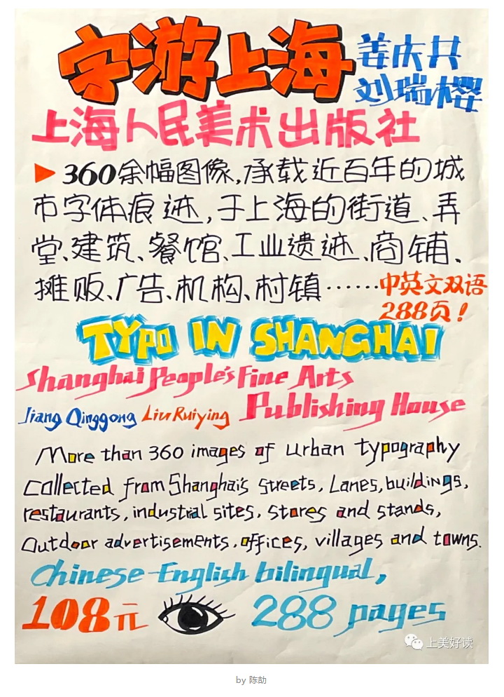 尽管本书中记录的文字和字体大部分已消失,但作者还是尽力从中整理出40余处在上海可以看到这些字迹的地方,供读者们前往实地观察(详见书后图释中的蓝色数字)。希望全世界的字体爱好者,能通过本书感知汉字字体和书写的丰富和活力。 Although the typefaces published in this book have all but disappeared, author has tried his best to identify over 40 sites in Shanghai where handwritten typefaces can still be seen. Author has included the sites in the annex of the book(numbers in blue), as he hopes readers can go and see for themselves. We hope that this book can give type lovers all over the world a feel of the richness of Chinese typography.