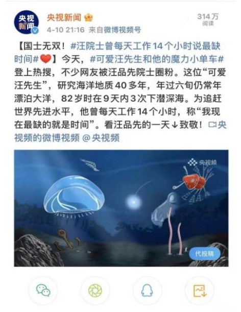 不少人被汪品先院士圈粉,就连央视新闻也忍不住为汪先生打call!