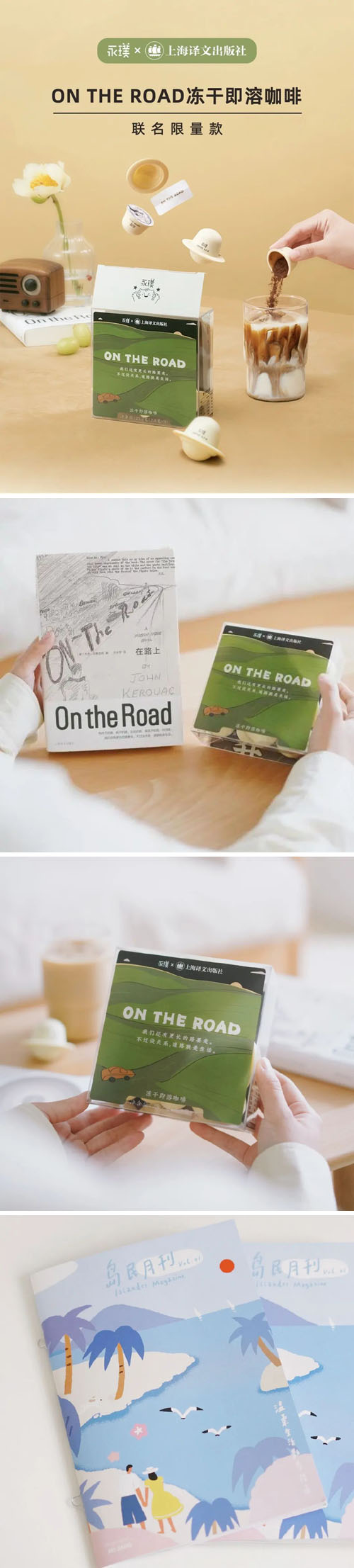 去年我们和永璞合作的「Floating dream 浮梦之白」受到了很多朋友的喜欢,文学小纸条的形式让咖啡变成了小小的“盲盒”,每次冲泡咖啡,都能收获一些新的文学能量。这次全新的冻干咖啡每盒内含9颗小飞碟,搭配《在路上》惊喜纸条,探索你的在路上格言,给你增加多一点小惊喜。