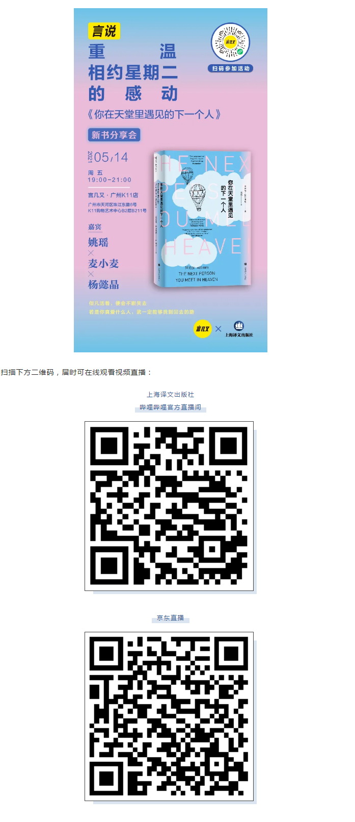 《相约星期二》是一本非常奇妙的书:它几乎没有情节,大部分内容由米奇·阿尔博姆和他的老师莫里·施瓦茨一次又一次的对话(也可以称之为“课堂”)构成,每次对话都发生在星期二——这就是书名的由来。 每个星期二,他们的对话都有一个大致的主题。老实说,这些主题都有点大得吓人。但考虑到莫里·施瓦茨曾经是资深的社会学教授、如今是一个奄奄一息的老人,他即将结束的一生的感悟都凝练在他的话语中。这样看来,他的感悟是值得一听的。 第二个星期二,他们谈论的是:自怜。Tuesday with Morrie《相约星期二》[美]米奇·阿尔博姆 著吴洪 译上海译文出版社 莫里·施瓦茨教授身患重病。他的手指还能动,但手臂已经抬不起来了。甚至是上厕所或者挪动自己的头,他也要用手指去摇动铃铛,呼唤护理人员来帮忙。 甚至,就连摇铃铛这件事,偶尔也会失败。 但即便如此,莫里也没有自怨自艾: “米奇,我不让自己有更多的自哀自怜。每天早上就一小会儿,掉几滴眼泪,就完了。……只有当你觉得它可怕时,它才可怕,”莫里说,“看着自己的躯体慢慢萎缩的确很可怕,但它也有幸运的一面,因为我有时间跟人说再见。” 他笑笑说:“不是每个人都这么幸运的。” 是的,即使遭遇如此变故,莫里依然乐观。他难免让读者们想起了那个经典的寓言:一杯水打翻了,一个人说,太糟糕了,我们失去了二分之一的水,另一个则说,太好了,我们还拥有剩下的那一半。 莫里就是后面那个人,对他来说,重要的不是已经失去的东西,而是我们还拥有的。只要把目光落在我们还拥有的东西上,我们就可以从中汲取力量,即使像莫里这样近乎瘫痪,也可以说“我是幸运的”。 这恐怕是一种现代人最欠缺也最需要的乐观心态。但很可惜,活着的人无法这么洒脱,反倒是将死之人才能拥有这样坦然的心态。 好在,每一位阅读了《相约星期二》的读者,多多少少都能从莫里的身上学到点什么,无怪乎这本书成为畅销全球的心灵读本。 更多谈话细节与人生感悟,尽在这本风靡全球十余年的《相约星期二》。2021年,上海译文出版社推出全新米奇·阿尔博姆作品系列,包含《相约星期二》《一日重生》《你在天堂里遇见的五个人》《你在天堂遇见的下一个人》《来一点信仰》和《时光守护者》六本书,与万千一起重温相约星期二的感动。 2021年5月14日(周五),米奇·阿尔博姆新作《你在天堂遇到的下一个人》新书分享会在广州言几又天河K11举办,邀请本书译者、ONE·一个签约作者、独立摄影师姚瑶,作家、书评人、“小麦读书”主理人麦小麦,本书责编杨懿晶,共话从《你在天堂里遇见的五个人》到《你在天堂遇见的下一个人》的传奇延续,重温“相约星期二”的感动。 扫描下方小程序码,报名前往现场参与活动:The Next Person You Meet in Heaven《你在天堂遇见的下一个人》[美]米奇·阿尔博姆 著姚瑶 译上海译文出版社