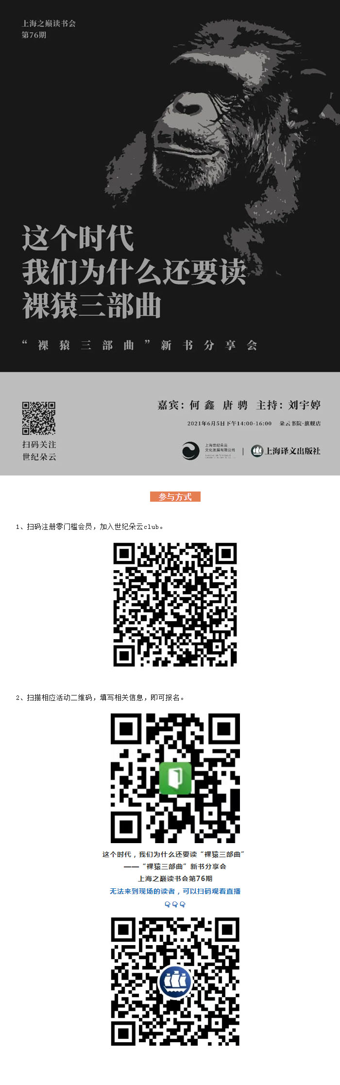 时间:2021年6月5日14:00-16:00 地点:朵云书院·旗舰店 嘉宾:何鑫、唐骋 主持:刘宇婷