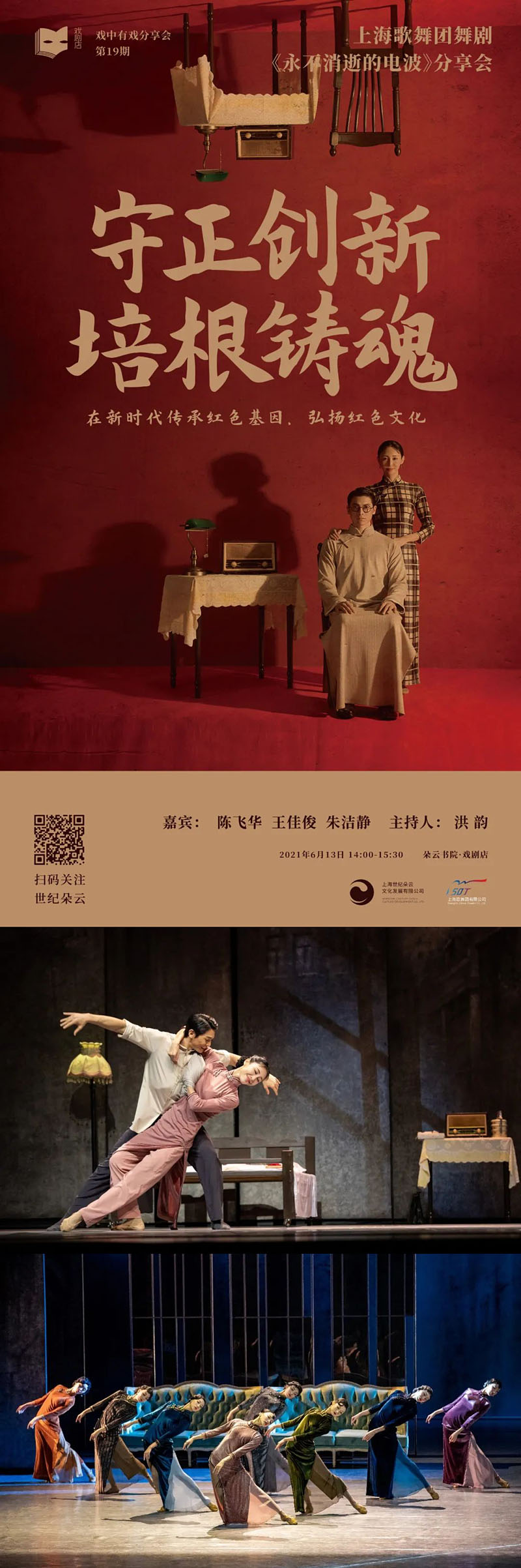 06/13 守正创新,培根铸魂 戏中戏分享会第19期 谈起火“出圈”的爆款舞剧,不得不提到由上海歌舞团集结众多优秀主创推出的首部谍战题材舞剧《永不消逝的电波》。