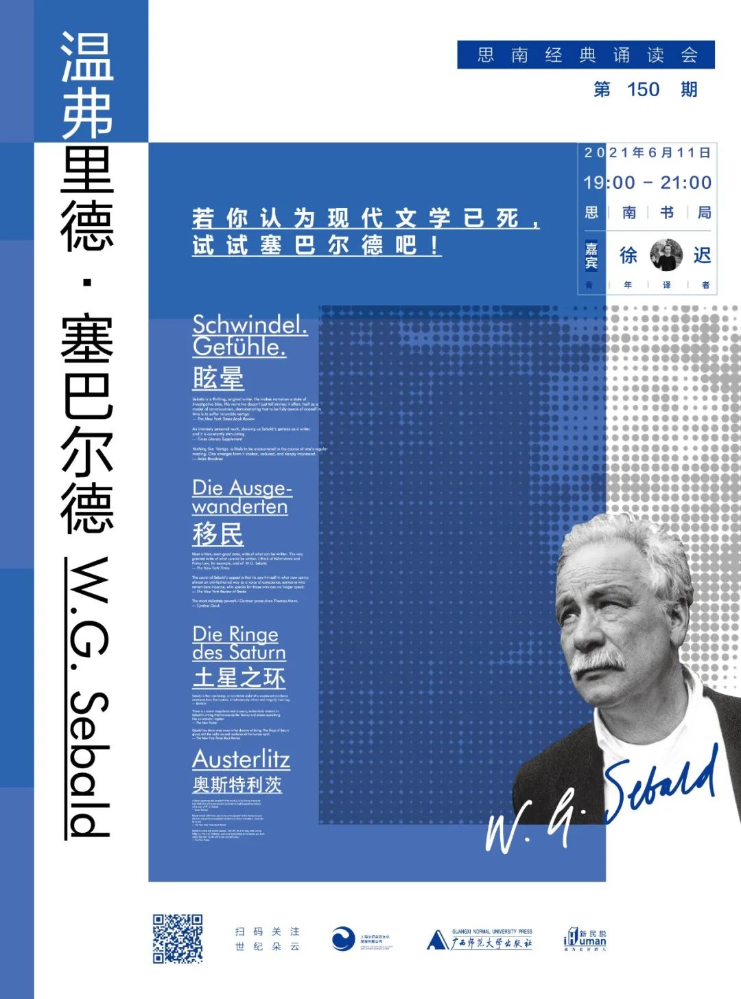 06/11 在记忆的虚影中漫游 思南经典诵读会第150期 德国作家塞巴尔德的作品被陆续引入中文世界之后,其虚实结合、图文并置的全新文体引发了巨大关注,塞巴尔德成为“福克纳、马尔克斯和卡佛之后,中文写作者的又一个写作典型。”