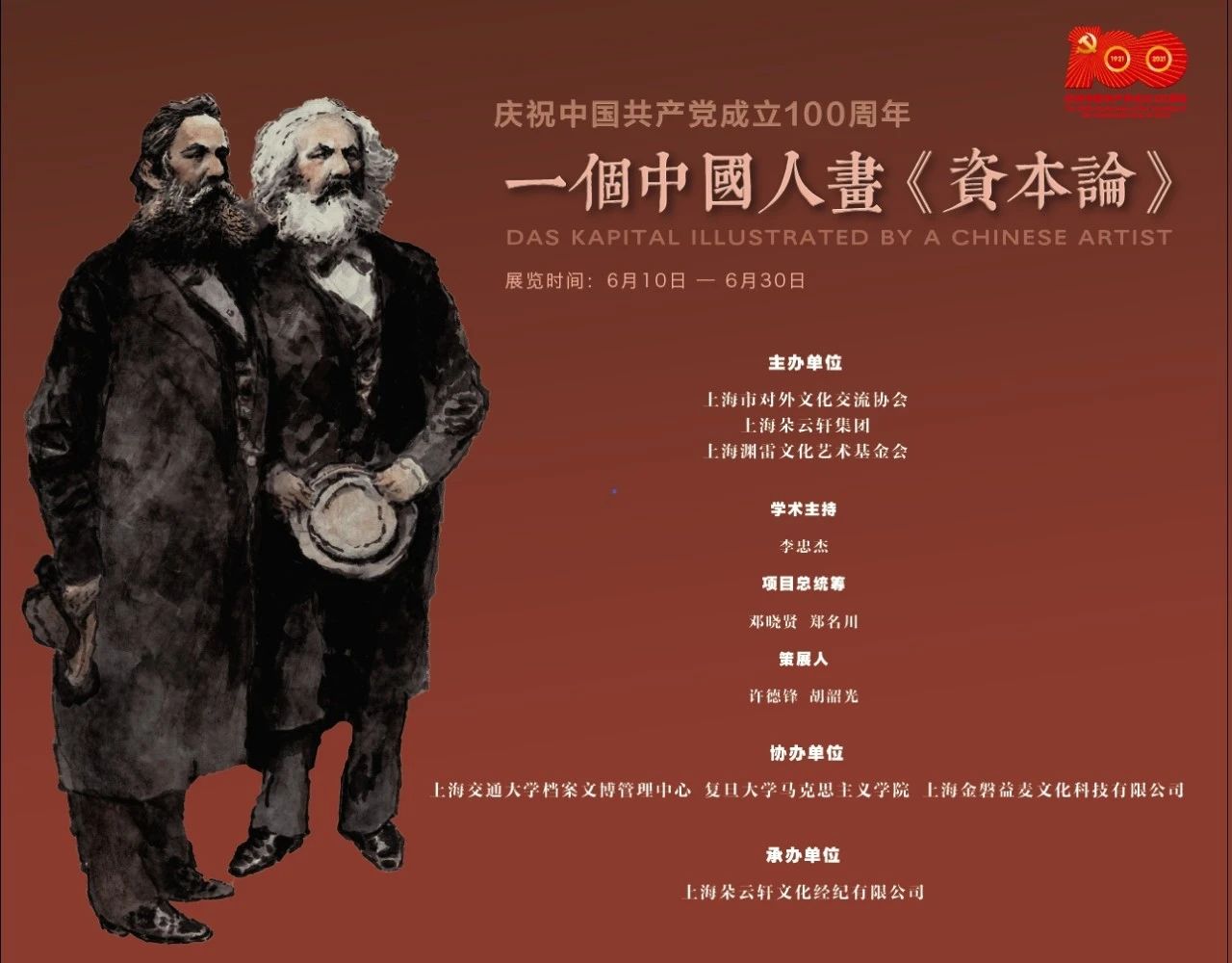 今年是中国共产党成立100周年,由上海市对外文化交流协会、上海朵云轩集团、上海渊雷文化艺术基金会共同主办的“一个中国人画《资本论》”大展,将于2021年6月10日至30日在南京东路朵云轩隆重举办。本次展出作品为戴敦邦先生所绘。