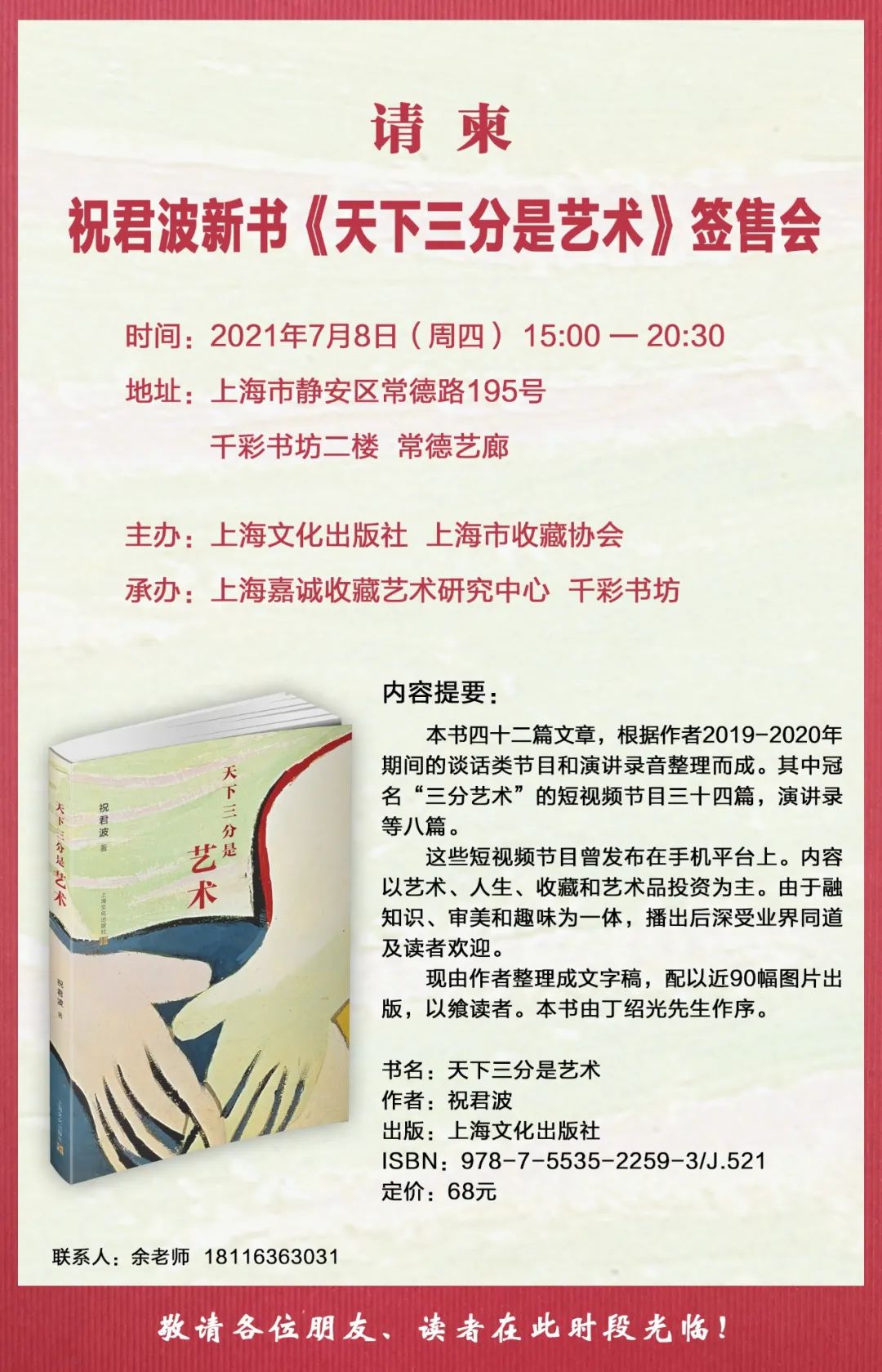 活动预告|祝君波新书《天下三分是艺术》签售会