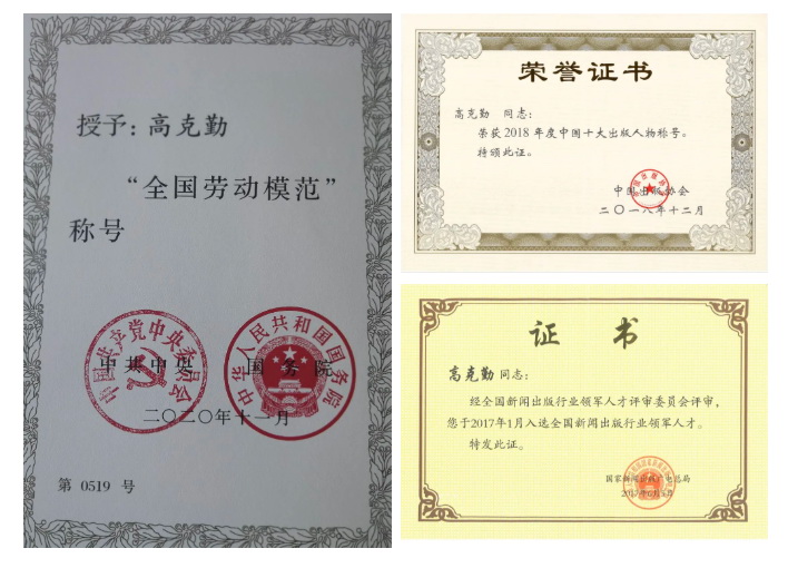 上海古籍出版社党委书记、社长高克勤出席第五届中国出版政府奖表彰会领奖 近日,第五届中国出版政府奖正式公布,上海世纪出版集团再创佳绩,总计获得各类奖项19项,其中荣誉奖1项,正奖11项,提名奖7项,获奖总数和奖项覆盖面均创近几届新高。上海古籍出版社党委书记、社长高克勤荣获中国出版政府奖“优秀出版人物奖”。 高克勤同志从事编辑出版工作30多年,从编辑一步步做起,分管过出版社的所有生产经营部门,直至全面负责出版社的一切工作,是一位精通编辑出版业务、对中国古代文化有深入研究、而又擅长经营管理的复合型人才。 在长期的编辑出版工作中,高克勤同志对古籍整理出版有准确的认识,对上海古籍出版社(以下简称“上古社”)的传统和品牌有透彻的理解。2013年1月担任上古社党委书记、社长后,他紧紧抓住文化强国的大好机遇,大力弘扬中华优秀传统文化,推动中华优秀传统文化的创造性转化和创新性发展,进一步做好专业出版,狠抓质量管理,做好以国家“十二五规划”“十三五规划”出版项目、国家出版基金项目、国家古籍整理出版规划项目为重心的高质量古籍整理和学术著作的出版工作,同时积极拓展大众读物出版,加大图书的营销力度,提高出版社的产能,增加出版社的核心竞争力与社会影响力,使出版社保持了良好的可持续的发展,取得了突出的社会效益和良好的经济效益。2014年,上古社被评为第三届中国出版政府奖先进出版单位。在第三、四届中国出版政府奖评选中,上古社有三种图书获图书奖,两种图书获提名奖,获奖数名列上海第一,并连续多年较好地完成图书出版和各项经济指标的预算任务,全社销售收入、利润总额和职工收入都有明显增长。2020年的利润总额和职工收入,分别是2012年的近4倍和近2倍。高克勤同志为人正直,作风正派,廉洁自律,具有强烈的事业心、责任感,爱岗敬业,求实创新,敢于担当,在群众中享有较高威信。 作为全国知名的古籍整理出版专家,高克勤多年受全国古籍整理出版规划领导小组办公室的邀请,为全国古籍整理出版专业培训班编辑授课;他还长期担任中国出版协会古籍工作委员会副主任,参与全国古籍整理图书的评优推荐活动、国家古籍整理出版标准和国家古籍整理出版规划的制订,为我国的古籍整理出版事业做出了积极的贡献。 2015年,高克勤同志荣获“2010-2014年度上海市劳动模范”称号;2017年,获“全国新闻出版行业领军人物”称号;2019年,获2018年“全国十大出版人物”称号(中国出版协会评选);2020年,获“全国劳动模范”称号。