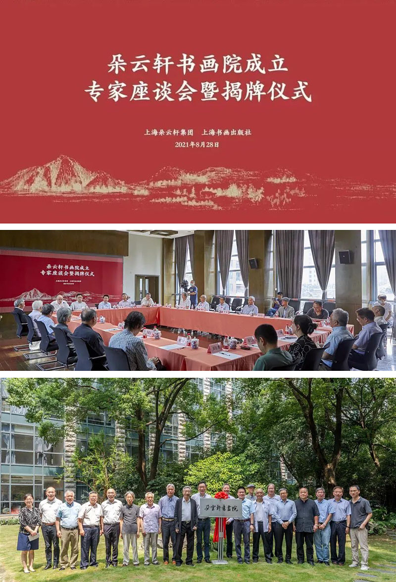 朵云轩书画院成立专家座谈会暨揭牌仪式 2021年8月28日,上海朵云轩集团与上海书画出版社举行朵云轩书画院成立专家座谈会暨揭牌仪式。