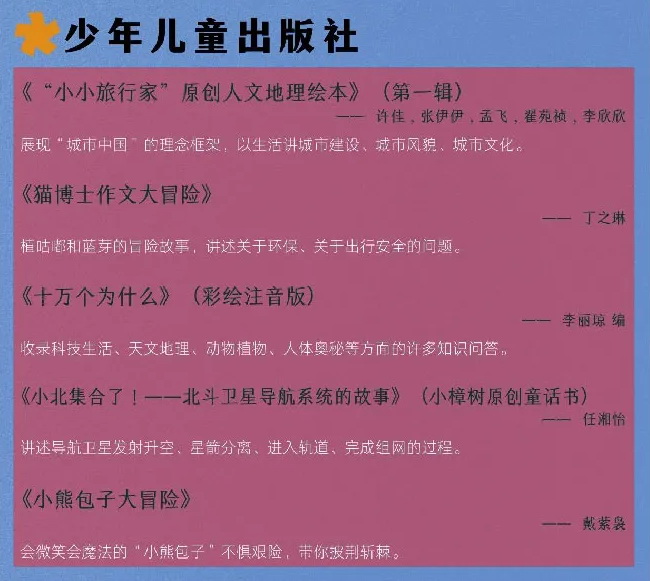 2021年,马上就要结束了,今年你读了多少书,哪些书让你有过一些温暖、快乐或者思考呢?哪些书让你最想分享给其他人呢? 为了满足爱书心切的读者们,上海书展指导委员会办公室策划推出了“我来推荐一本书”——短视频荐书大赛! 而我们也选出了少年儿童出版社今年最受欢迎的5本书,邀请大家参与这次大赛。 如果你恰好读过其中一本,恰好有想和人分享的感悟,那么把它拍成短视频,不需要很多时间,30~60秒,分享给同样爱书的人,也许你会找到自己的知音,也许就是这个瞬间,你将影响,很多人……