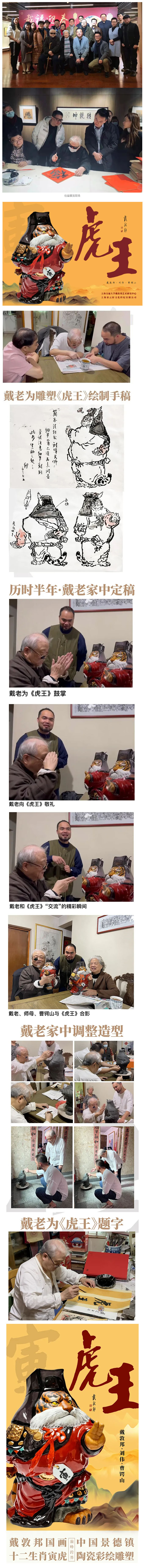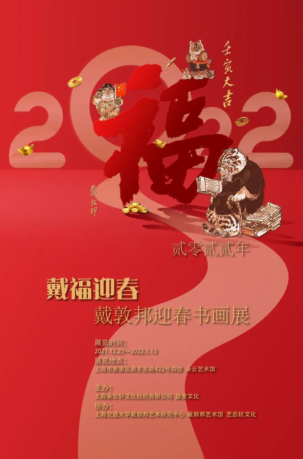 金牛奋蹄开锦绣,寅虎添翼会风云,2021年的日历渐渐翻到了最后一页,朵云轩又和大家共同迎来了一年一会的“‘戴’福迎春——戴敦邦2022新春书画展”。即将到来的虎年,古来即有“虎虎生风”的美好寓意,值此新年到来之际,戴老挥毫为“戴家样”的“粉丝”们“戴”福迎春!戴老为大家准备了不少虎年主题的绘画作品,让我们在此先一睹为快吧! 一袭中式衣袍,一派仙风道骨,很难想象,熟悉中国画一代大家戴敦邦先生的人都知道,尽管他早已年过耄耋,著作等身,却依旧分秒必争,每天在自己并不豪华的画室里,没日没夜地潜心创作着,寒来暑往,在这间连空调都没有的“戴家样”艺术作坊中,宛如艺术门里的苦行和尚那般,对自己心目中的“中国风情、民族派头”,孜孜不倦地做着探索与实践。丹青不知老已至,富贵于他如闲云,心中永远只有一个信念,用自己的画笔,用毕生心血凝聚的“戴家样”艺术,为中外读者讲好中国故事。 从乙亥猪年开始,益麦文化与朵云轩合作为戴老连续举办了三届迎春展,受到广大艺术爱好者的热烈支持,戴老为新年创作的生肖作品年年售罄,场面火爆,成为新年一道靓丽的风景。明年虎年,正是戴老的本命年,所以戴老对“虎”有着别样的偏爱之情。从今年初开始,戴老就和益麦文化团队着手策划把第四届虎年迎春活动做出新的特色,吸引更多的戴粉参加狂欢。今年戴老还与景德镇的刘伟老师、曹锷山老师合作,反复研讨、创作,将戴老的一幅虎年生肖作品从平面走向立体,化为一件可以捧在手里的瓷塑作品。历时七个多月的时间,由戴老亲笔题字的“虎王”也终于在“戴福迎春”展上与大家见面啦,给第四届迎春展锦上添花!开幕式及迎春笔会Opening Ceremony时间:12月26日(周日)下午2:00地点:朵云艺术馆南京东路422号4楼戴老亲临朵云艺术馆,出席开幕仪式和迎春笔会,为大家书写四字吉言和“福”、“寿”。开幕时间2021年12月26日(周日)下午2点展览时间2021年12月25日—2022年1月13日展览地点朵云艺术馆 南京东路422号朵云轩四楼主办单位上海朵云轩文化经纪有限公司 益麦文化 协办单位上海交通大学戴敦邦艺术研究中心戴敦邦艺术馆艺启杭文化