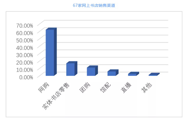 销售渠道呈现多样化趋势,网购占据了62.25%,其他依次为实体书店零售(16.88%)、团购(11.13%)、馆配(5.88%)、直播(2.63%)、批发(1.25%)等,见图一。