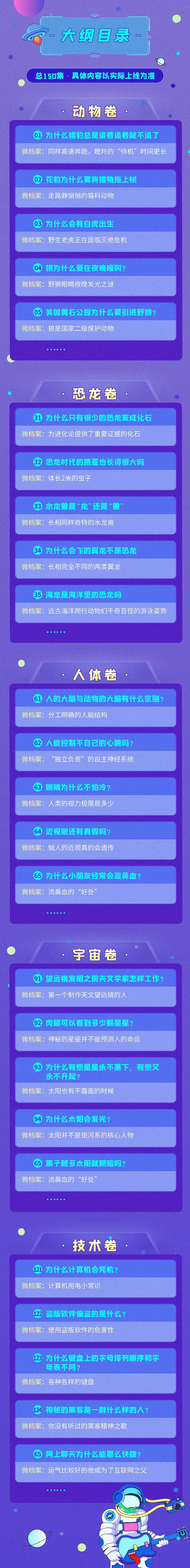 喜马拉雅根据儿童类型下历史播放热度总结出科普类专辑核心亮点主题:人体奥秘、宇宙星空、军事科技、生活常识、地理、动植物世界等,为《十万个为什么》少儿科普剧设置了动物、恐龙、人体、宇宙、技术五大内容主题,设置150集小剧场和150集微档案,全剧共300集。同期上线的AI讲读版,也旨在通过AI技术方便全年龄段听众在碎片时间感受“十万个为什么”这一国民科普IP的更多魅力。